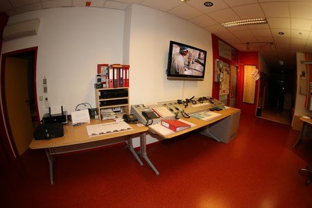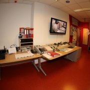 In der Alarmzentrale versehen hauptamtliche Feuerwehrmitglieder ihren Dienst in einem 12-Stunden-Wechseldienst-Rad. Die Bediensteten sind Angestellte der Freiwilligen Feuerwehr Wiener Neustadt.