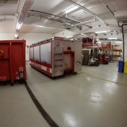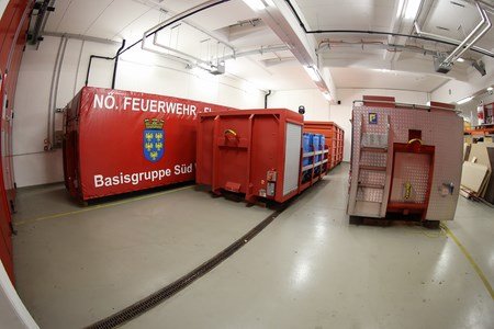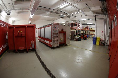 An der kurzen Front sind zwei Boxen für die Wechselladeaufbauten (auch Container genannt) reserviert. Da die Container nicht oft in Verwendung sind, wurde der vor Witterung geschützte Abstellplatz dringend erforderlich.