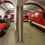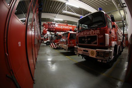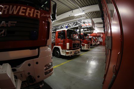 Die Fahrzeughalle ist im Hauptgebäude in zwei Bereiche geteilt.