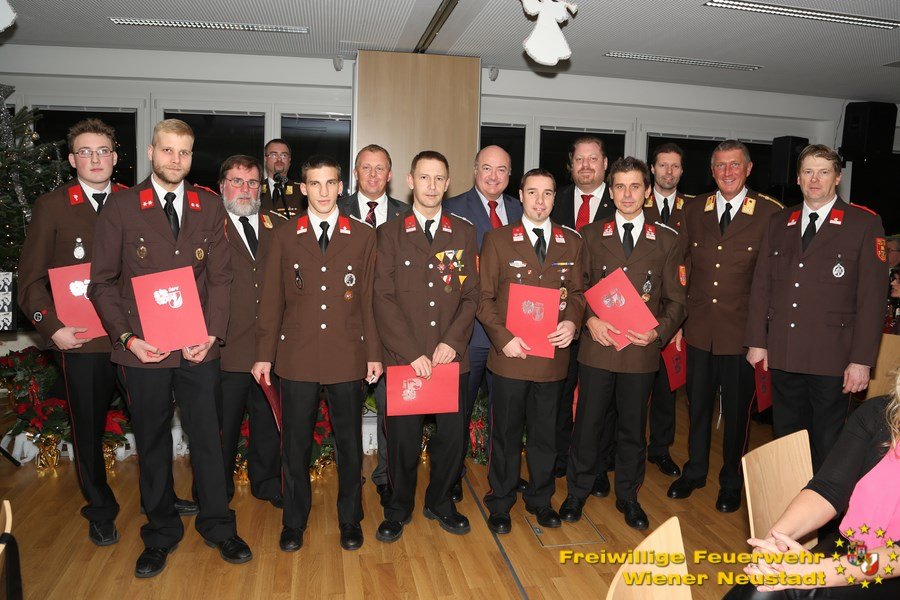 1214 Einsätze bestritten die Wiener Neustädter Feuerwehrleute heuer bis zum heutigen Tag. Freiwillig und unentgeltlich waren die Florianis für die Bevölkerung von Wiener Neustadt da. Tag und Nacht, 24 Stunden für Sie im Einsatz! Dank erfuhren sie am letzten Samstag in Form der Weihnachtsfeier im Otto Sommer Saal in unserem Neubau. Neben zahlreichen Ehrengästen sprach vor allem Bürgermeister Bernhard Müller von den zahlreichen Leistungen welche die Feuerwehr Wiener Neustadt und deren freiwilligen Mitglieder heuer erbrachten.