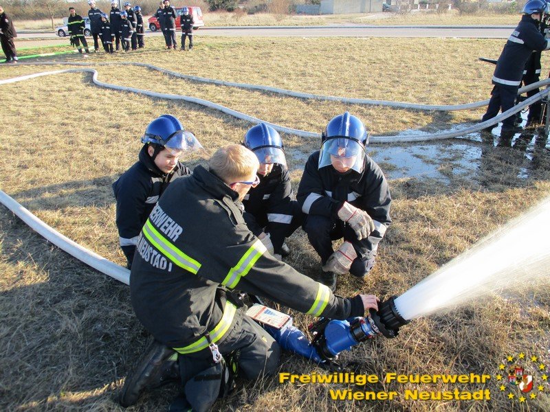 Wasserführende Amaturen waren das Thema der letzten Jugendstunde der Feuerwehrjugend Wiener Neustadt. Gemeinsam mit einigen erfahrenen aktiven Kameraden wurden die Abläufe und der Aufbau einer Löschleitung und das Arbeiten mit Wasserwerfern geübt. Übungen dieser Art fördern die richtige Handhabe am Gerät und stärken Zusammenhalt der Gruppe. Außerdem werden die jungen Kameraden so auf den bevorstehenden Wissenstest vorbereitet, wo sie sich Leistungsabzeichen verdienen können.