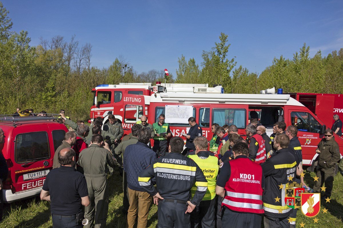 Geübt wurde in der Katastralgemeinde Kritzendorf die Brandbekämpfung brennender Sommerkabinen aus der Luft, die Evakuierung gefährdeter Siedler aus der meterhoch überfluteten Sommersiedlung sowie die Reparatur eines undichten Hochwasserschutzdammes mittels abgeworfener Big Packs an der Donau in Klosterneuburg. Drei Übungsthemen, mit denen sich die Feuerwehr schon mehrmals im Einsatz beschäftigten musste.