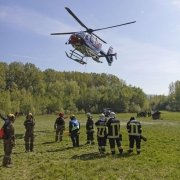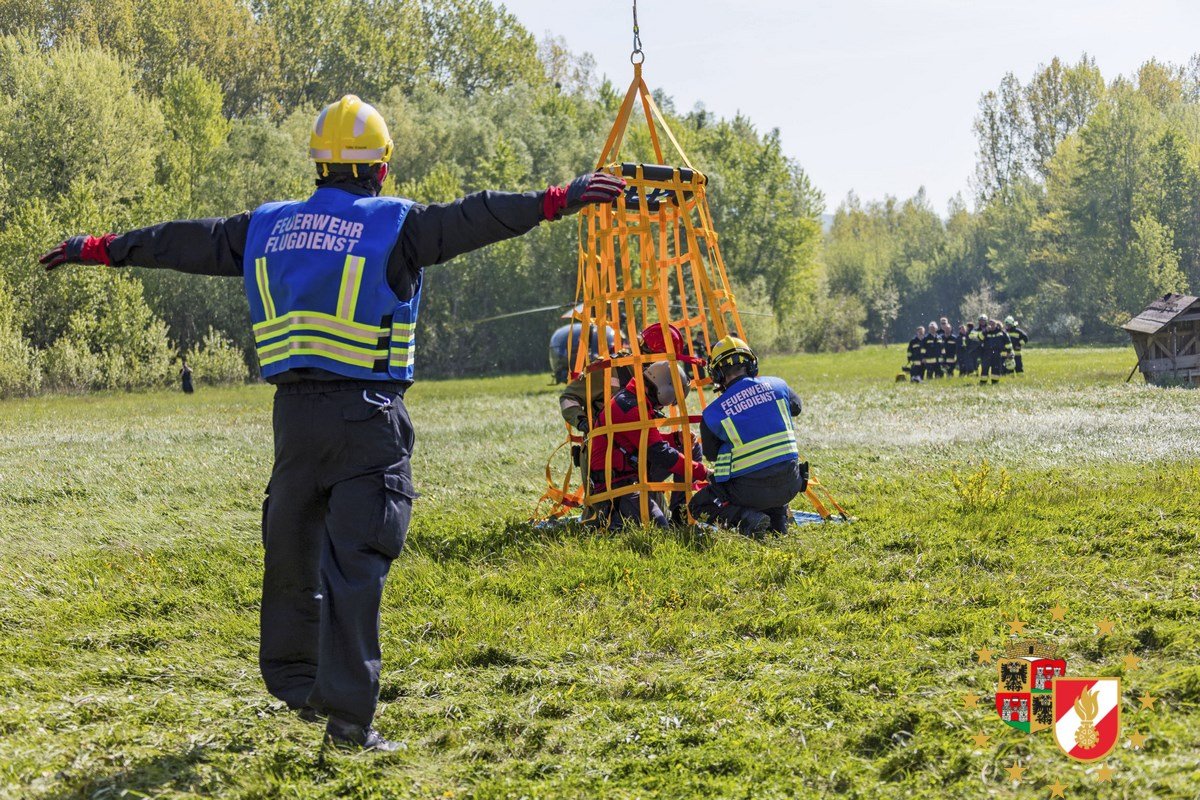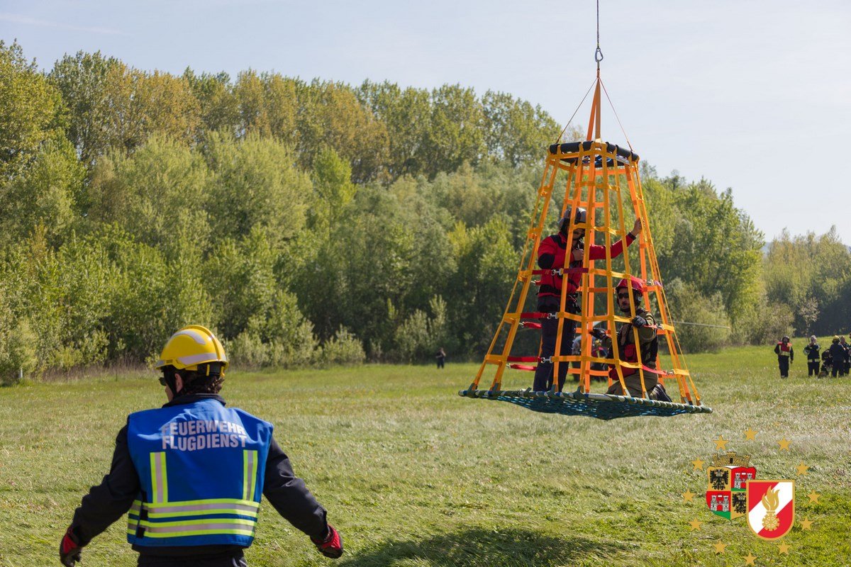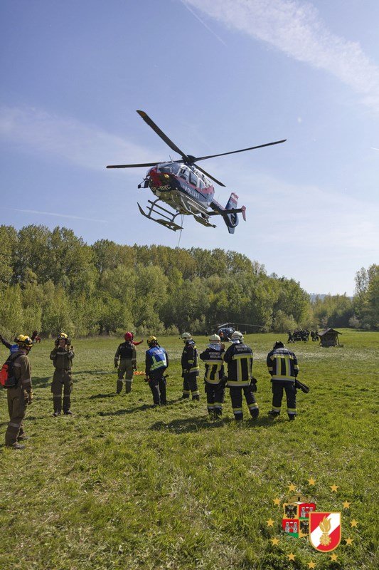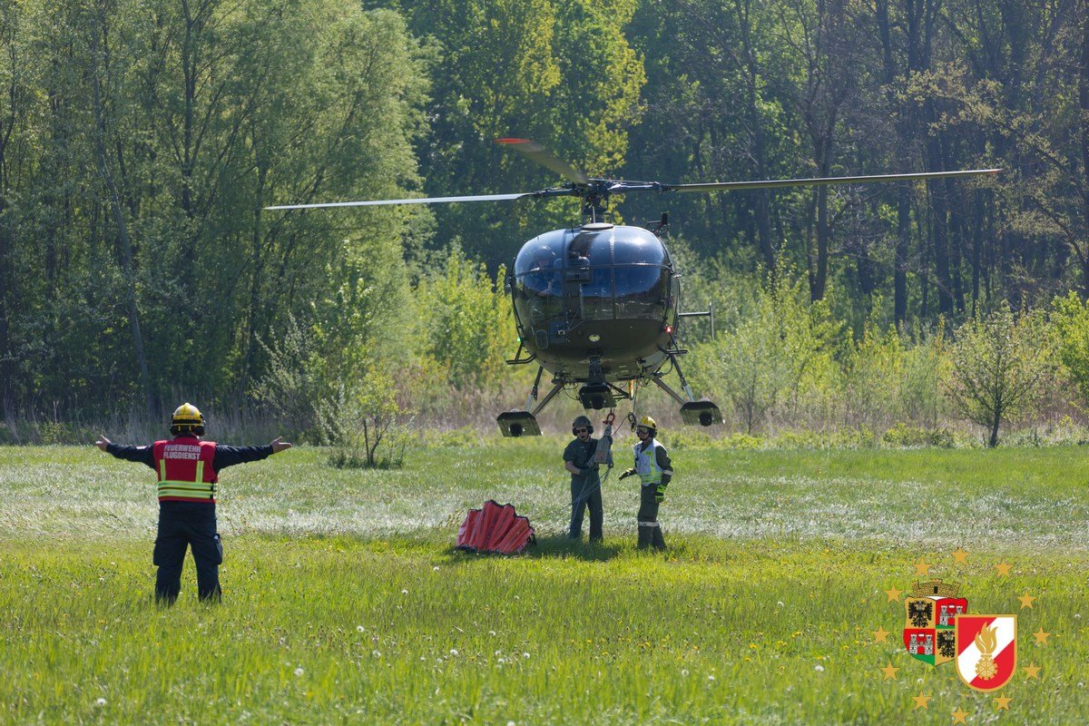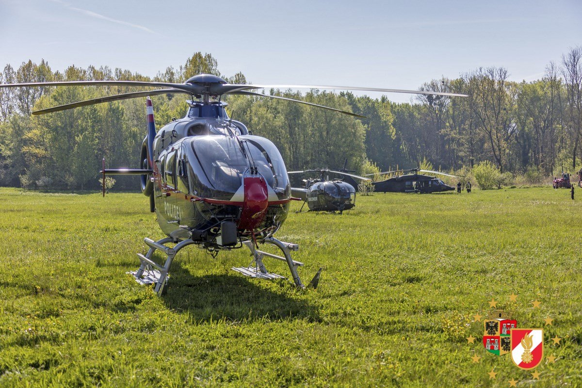 Mehrere Sommerhäuser in Vollbrand, im Hochwasser eingeschlossene Personen und ein Damm der zu brechen drohte. Das waren die nicht unrealistischen Szenarien einer spektakulären Übung des NÖ Feuerwehrflugdienstes am Freitag in Klosterneuburg. Unterstützt wurden die Einsatzkräfte von Hubschraubern der Polizei und des Bundesheeres.