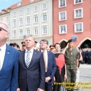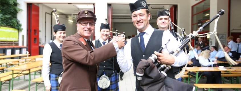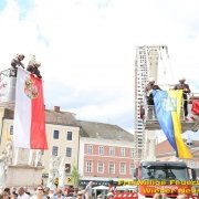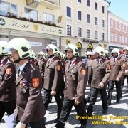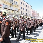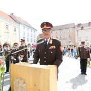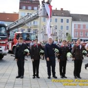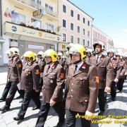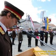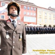 Am Samstag fand am Morgen am Hauptplatz, direkt vor dem neugestalteten Marienplatz, der Hauptrapport statt. Über 300 Feuerwehrmitglieder bildeten den Marschblock begleiteten doch die Kameradinnen und Kameraden der Feuerwehren der Neustädte in Europa die Mitglieder der Feuerwehr Wiener Neustadt. Angeführt wurde der Marschblock von der Eisenbahnermusik Flugrad und den Caledonian Pipes and Drums Burgenland, die in einem genialen Duett der beiden Ensembles, auch während des Hauptrapports die hunderte Zuschauer aus der Bevölkerung begeisterten.