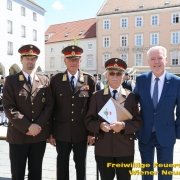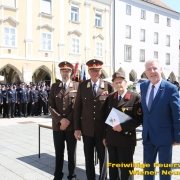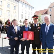 Viele Kameraden wurden geehrt und man ließ es sich nicht nehmen für Verdienste um die Internationale Kooperation auch Gäste aus den Neustädten Europas zu Ehren. Auch aus der Wirtschaft durfte eine hohe Auszeichnung vergeben werden: Dr. Philipp Jaklin von der Firma Jamal wurde die Florianiplakette des NÖ Landesfeuerwehrverbandes Clubobmann und Bürgermeister Klaus Schneeberger überreicht wurde. Dieser wurde ebenfalls geehrt und mit der höchsten Auszeichnung überrascht, die das Feuerwehrwesen einem Zivilisten übergeben kann. Bezirksfeuerwehrkommandant-Stv. und Wr. Neustädter Feuerwehrkommandant Josef Bugnar überreichte Bürgermeister Schneeberger die Florianiplakette des Österreichischen Bundesfeuerwehrverbandes, der Dachorganisation aller Feuerwehren Österreichs.