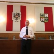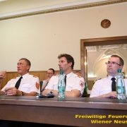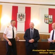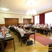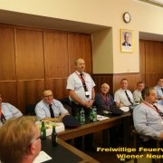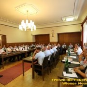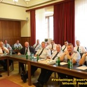 Es ist toll, was Wiener Neustadt hier auf die Beine gestellt hat. Die Festlichkeit und auch der würdige Rahmen des Hauptrapports haben uns als Gäste sehr beeindruckt. Die tolle Ausrückzeit der Feuerwehr konnten wir bei einigen Einsätzen live miterleben. Die Stadt kann auf ihre Männer der Feuerwehr Wiener Neustadt stolz sein, würdigte Armin Bindel von der Feuerwehr Waiblingen Neustadt, der Vorsitzende des Arbeitskreises Feuerwehren Neustadt in Europa, während seiner Rede im großen Sitzungssaal im alten Rathaus, welcher freundlicherweise für die Arbeitskreissitzung der Feuerwehren der Neustädte in Europa zur Verfügung gestellt wurde. Erster Vizebürgermeister Dr. Christian Stocker führte in seiner dortigen Ansprache auch die Gäste in die Geschichte der Stadt Wiener Neustadt ein.