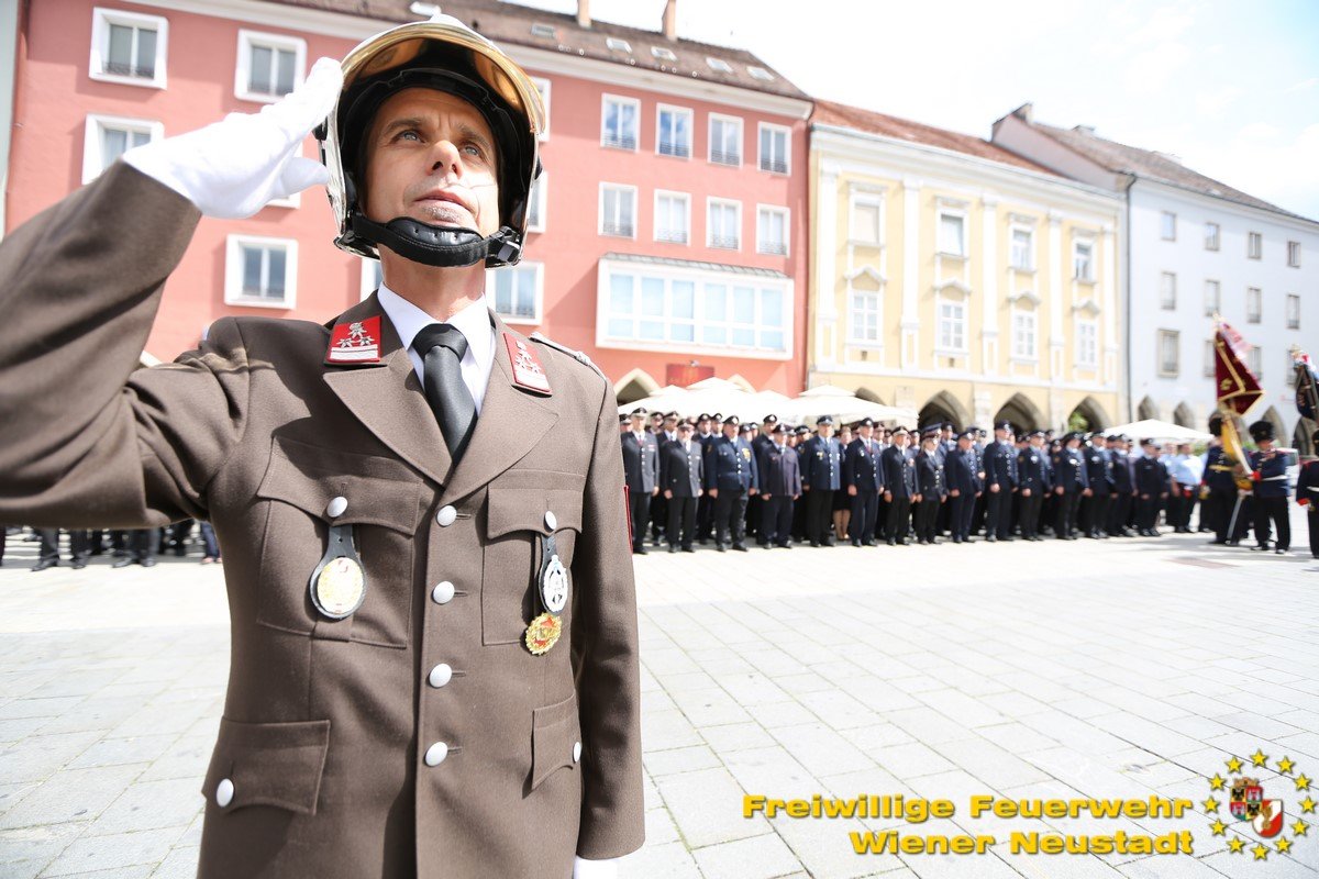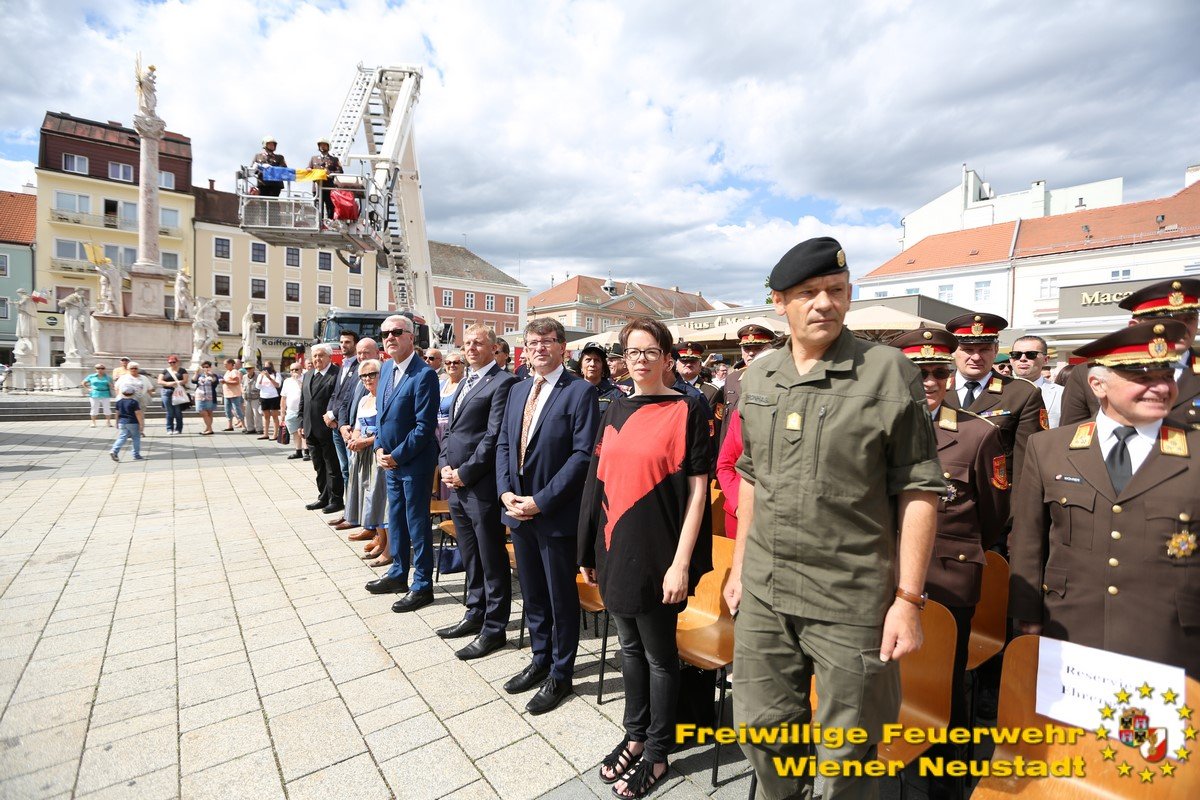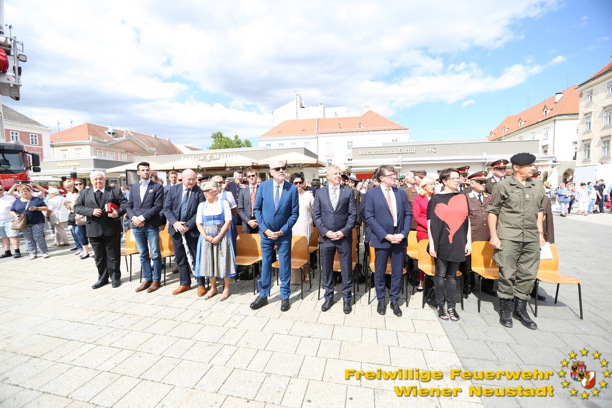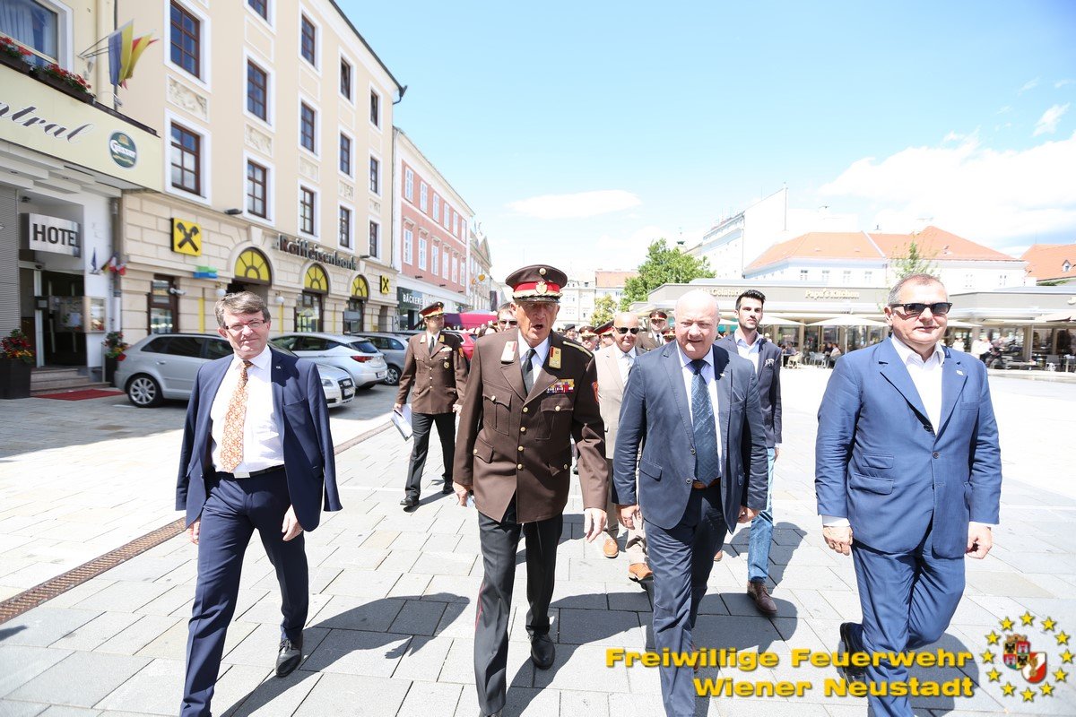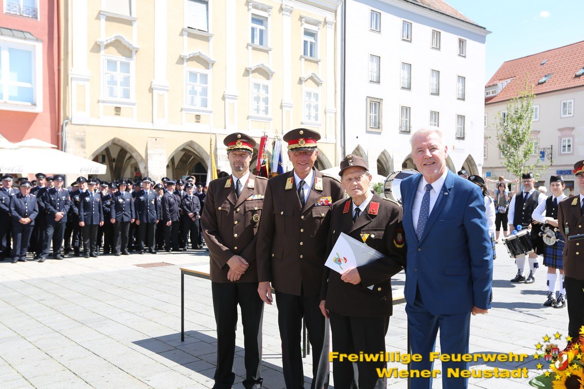 Viele Kameraden wurden geehrt und man ließ es sich nicht nehmen für Verdienste um die Internationale Kooperation auch Gäste aus den Neustädten Europas zu Ehren. Auch aus der Wirtschaft durfte eine hohe Auszeichnung vergeben werden: Dr. Philipp Jaklin von der Firma Jamal wurde die Florianiplakette des NÖ Landesfeuerwehrverbandes Clubobmann und Bürgermeister Klaus Schneeberger überreicht wurde. Dieser wurde ebenfalls geehrt und mit der höchsten Auszeichnung überrascht, die das Feuerwehrwesen einem Zivilisten übergeben kann. Bezirksfeuerwehrkommandant-Stv. und Wr. Neustädter Feuerwehrkommandant Josef Bugnar überreichte Bürgermeister Schneeberger die Florianiplakette des Österreichischen Bundesfeuerwehrverbandes, der Dachorganisation aller Feuerwehren Österreichs.