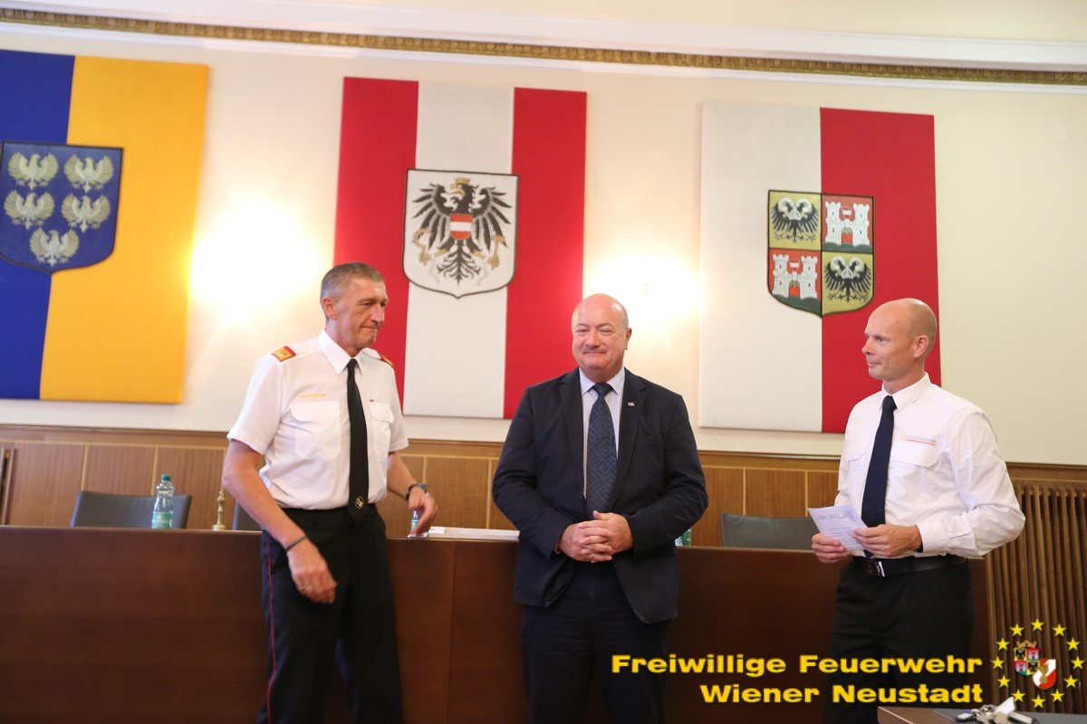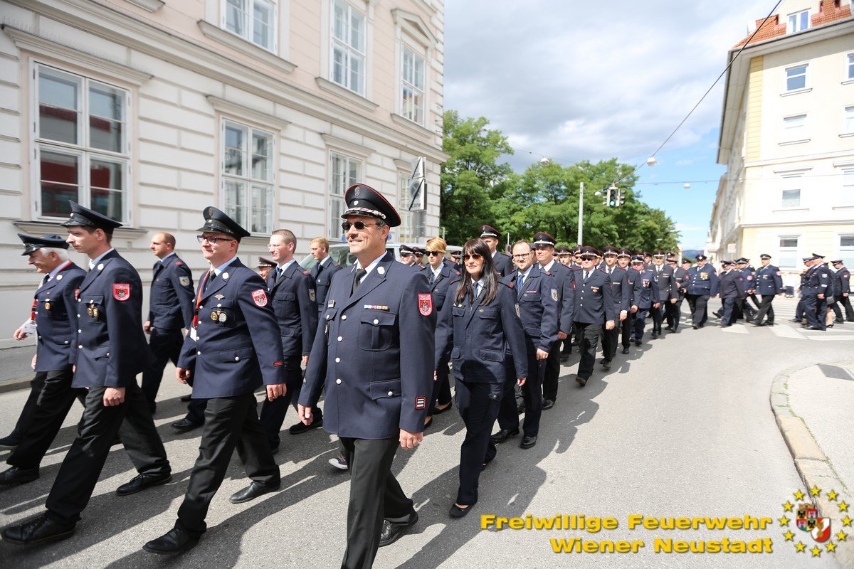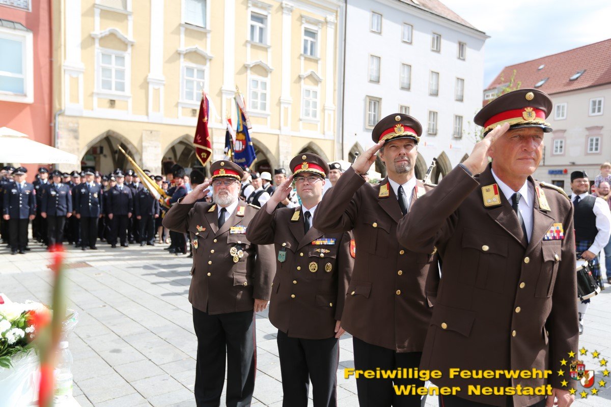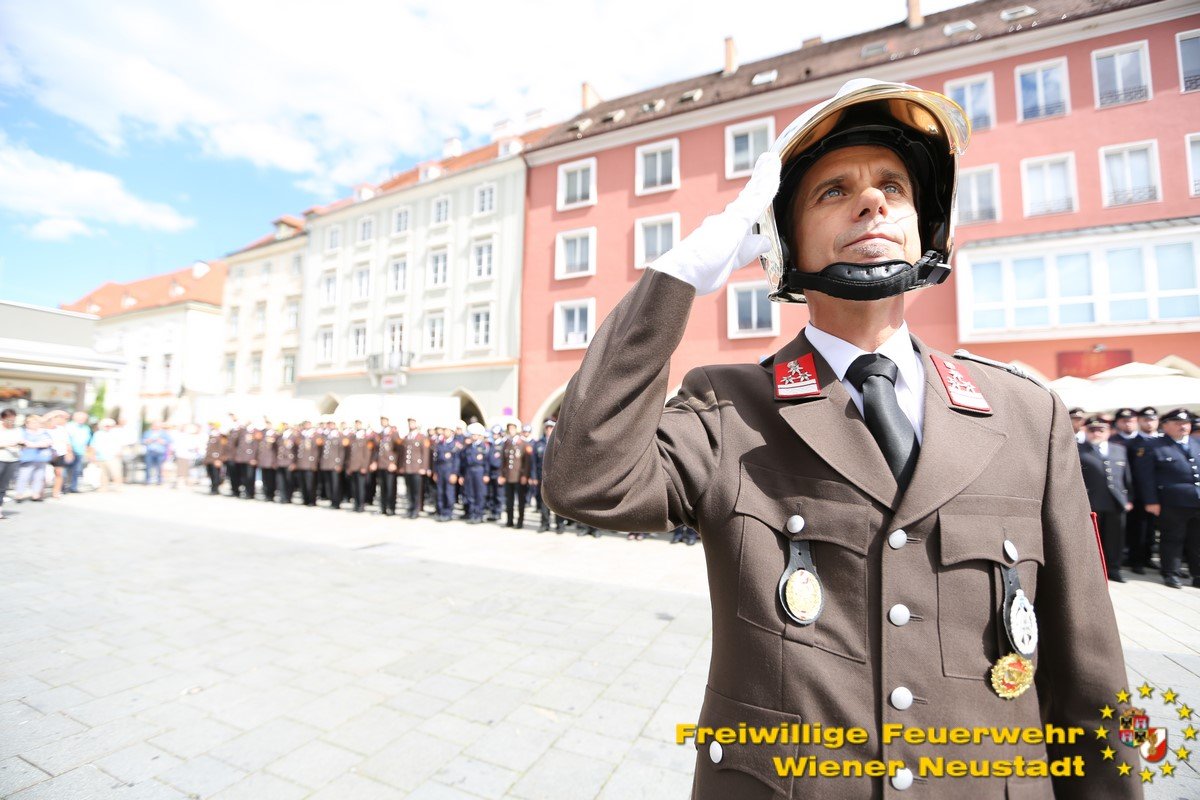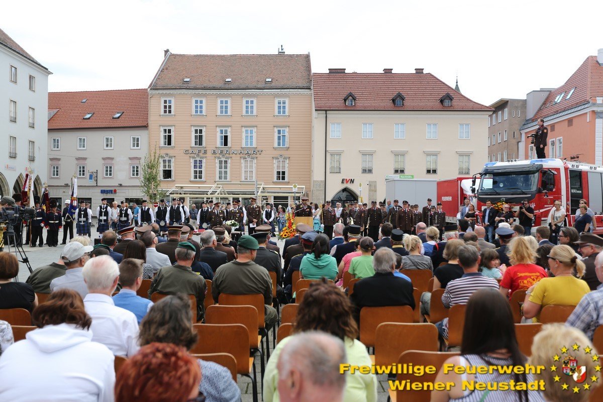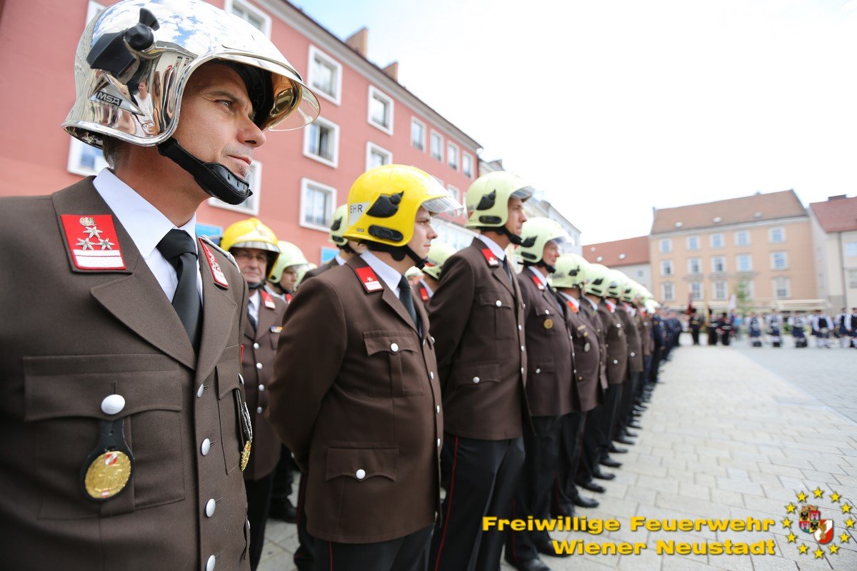 Viele Kameraden wurden geehrt und man ließ es sich nicht nehmen für Verdienste um die Internationale Kooperation auch Gäste aus den Neustädten Europas zu Ehren. Auch aus der Wirtschaft durfte eine hohe Auszeichnung vergeben werden: Dr. Philipp Jaklin von der Firma Jamal wurde die Florianiplakette des NÖ Landesfeuerwehrverbandes Clubobmann und Bürgermeister Klaus Schneeberger überreicht wurde. Dieser wurde ebenfalls geehrt und mit der höchsten Auszeichnung überrascht, die das Feuerwehrwesen einem Zivilisten übergeben kann. Bezirksfeuerwehrkommandant-Stv. und Wr. Neustädter Feuerwehrkommandant Josef Bugnar überreichte Bürgermeister Schneeberger die Florianiplakette des Österreichischen Bundesfeuerwehrverbandes, der Dachorganisation aller Feuerwehren Österreichs.