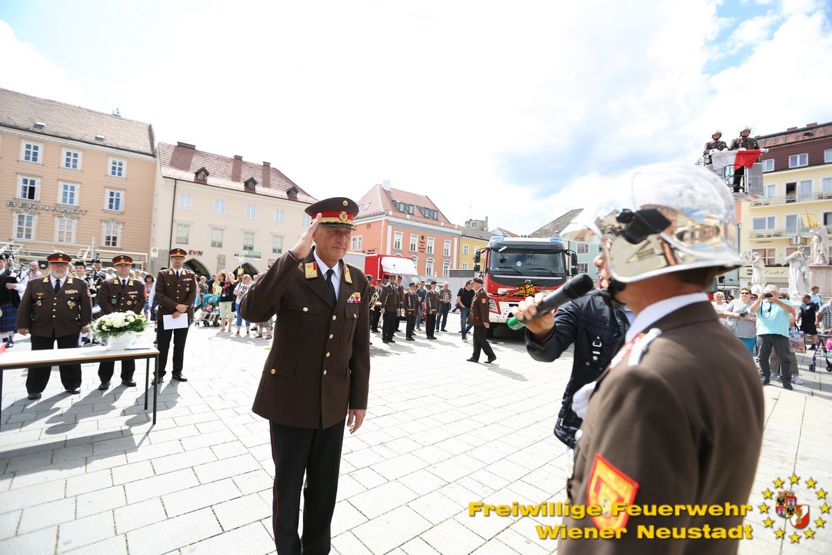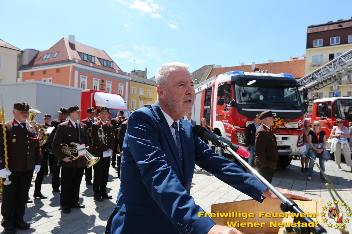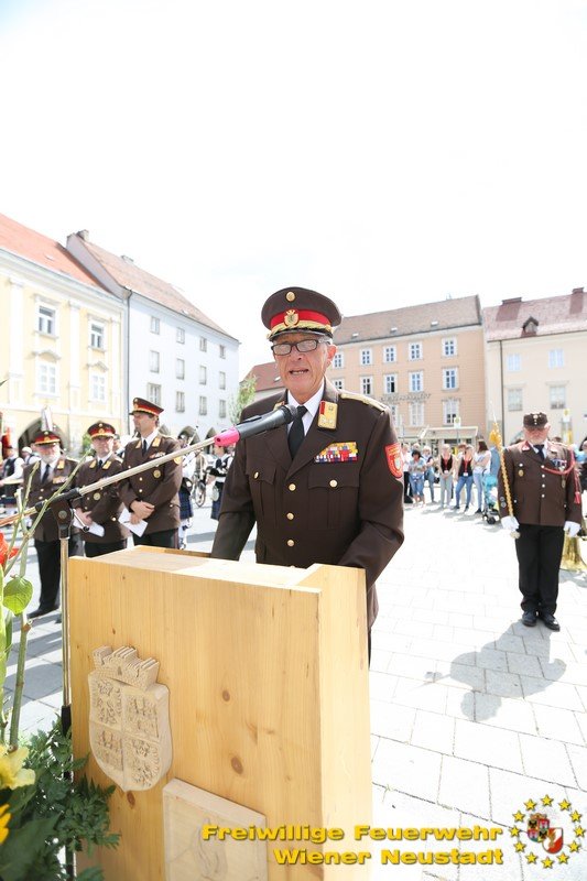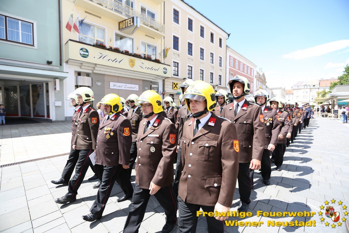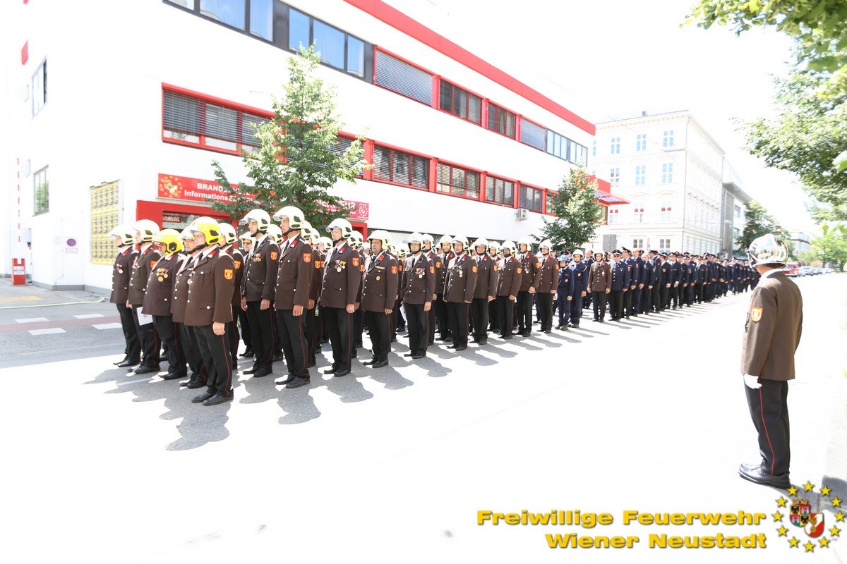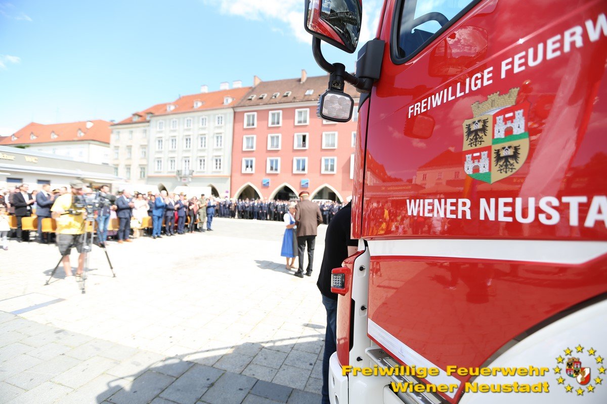 Viele Kameraden wurden geehrt und man ließ es sich nicht nehmen für Verdienste um die Internationale Kooperation auch Gäste aus den Neustädten Europas zu Ehren. Auch aus der Wirtschaft durfte eine hohe Auszeichnung vergeben werden: Dr. Philipp Jaklin von der Firma Jamal wurde die Florianiplakette des NÖ Landesfeuerwehrverbandes Clubobmann und Bürgermeister Klaus Schneeberger überreicht wurde. Dieser wurde ebenfalls geehrt und mit der höchsten Auszeichnung überrascht, die das Feuerwehrwesen einem Zivilisten übergeben kann. Bezirksfeuerwehrkommandant-Stv. und Wr. Neustädter Feuerwehrkommandant Josef Bugnar überreichte Bürgermeister Schneeberger die Florianiplakette des Österreichischen Bundesfeuerwehrverbandes, der Dachorganisation aller Feuerwehren Österreichs.