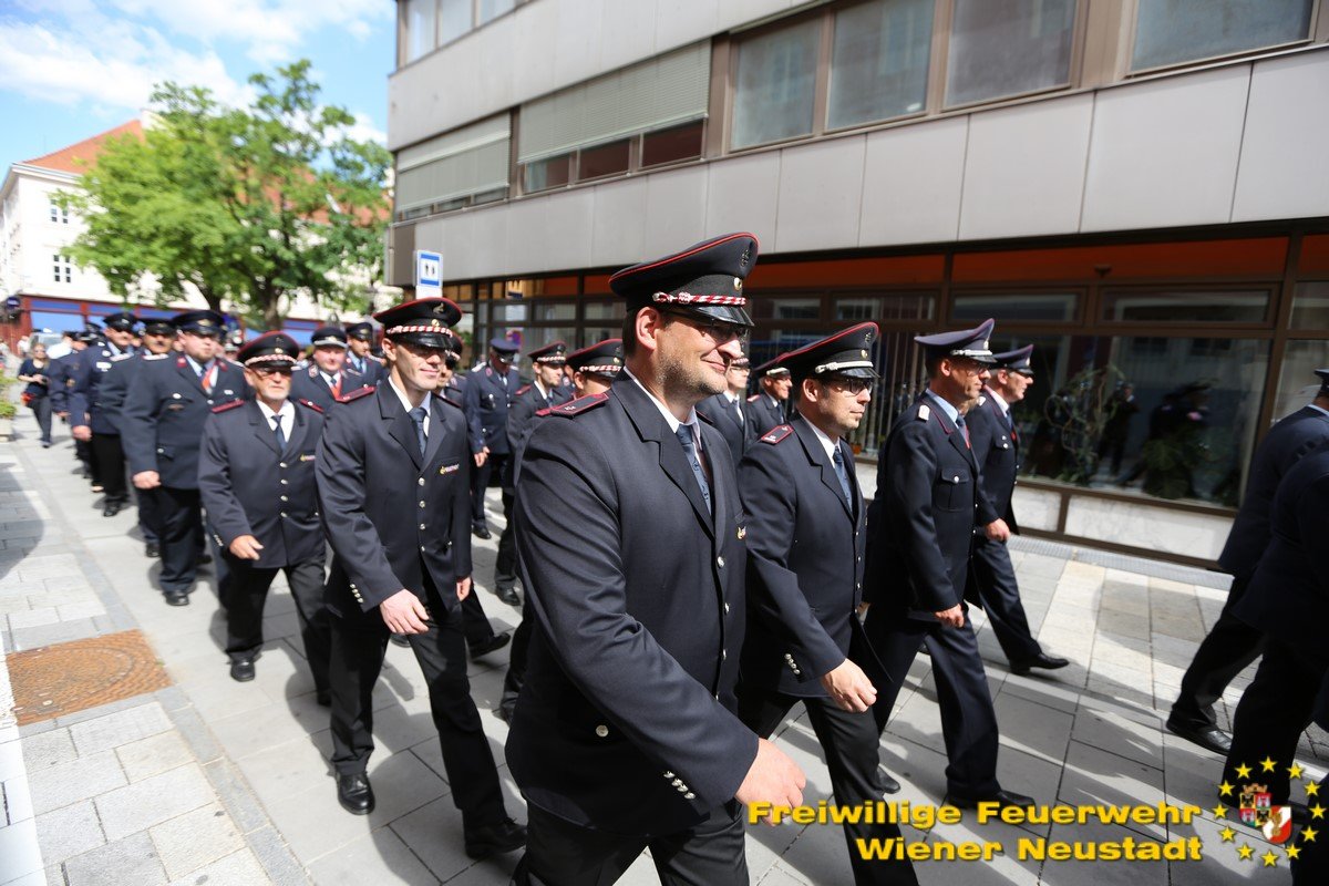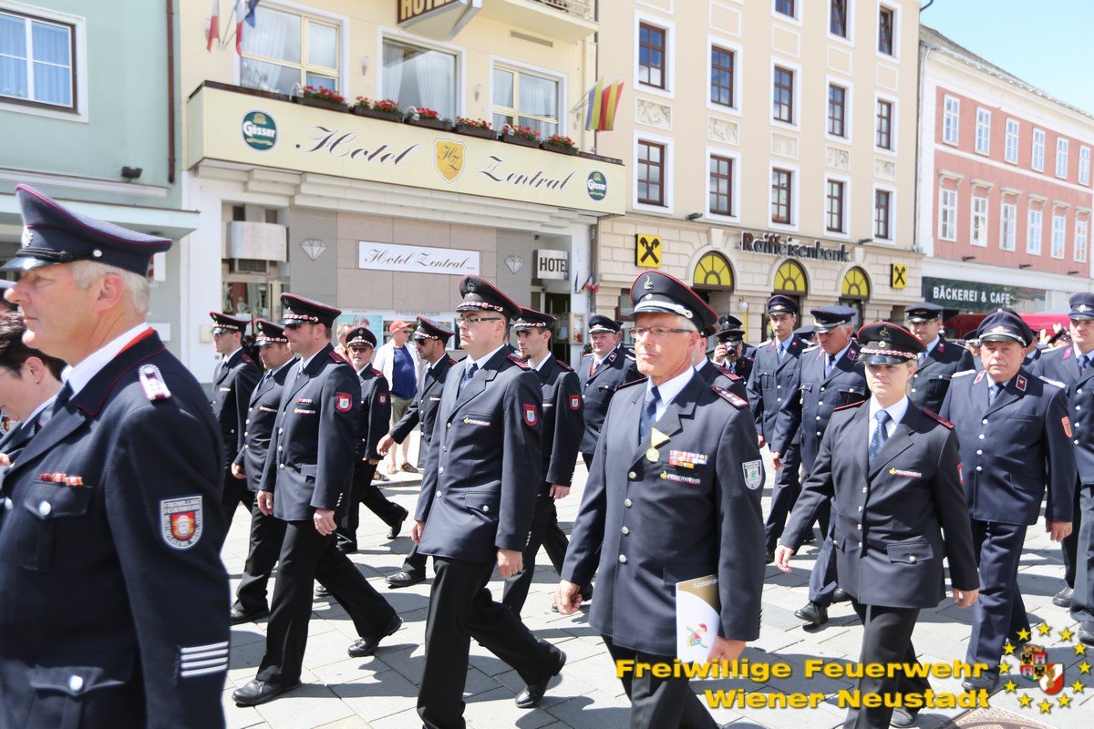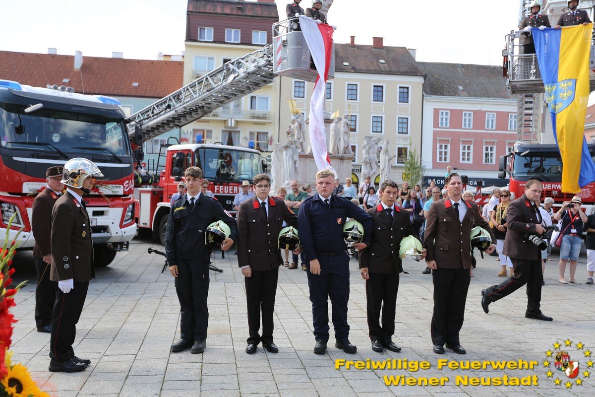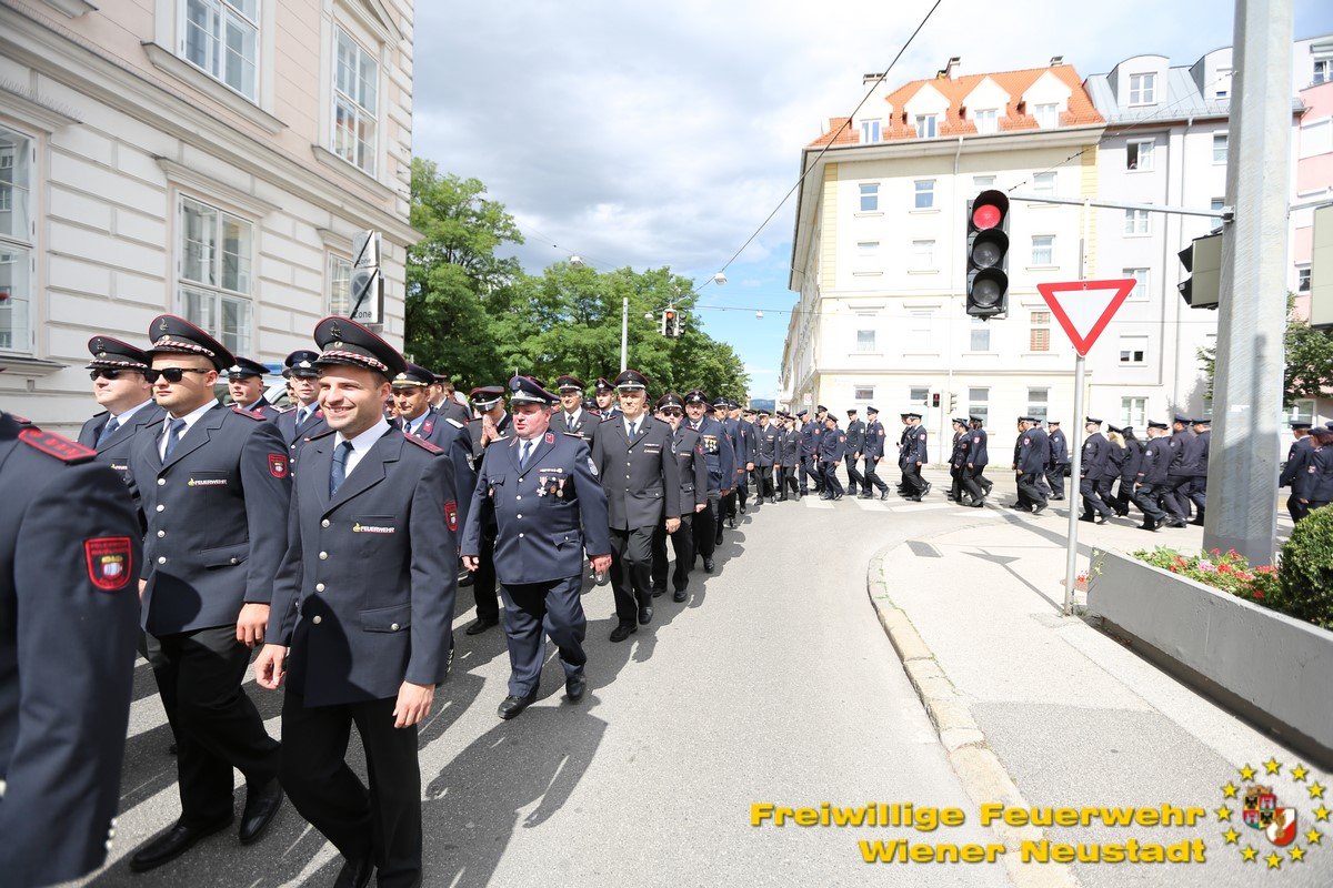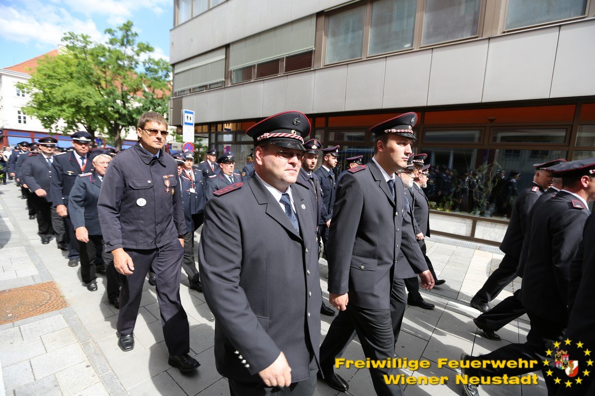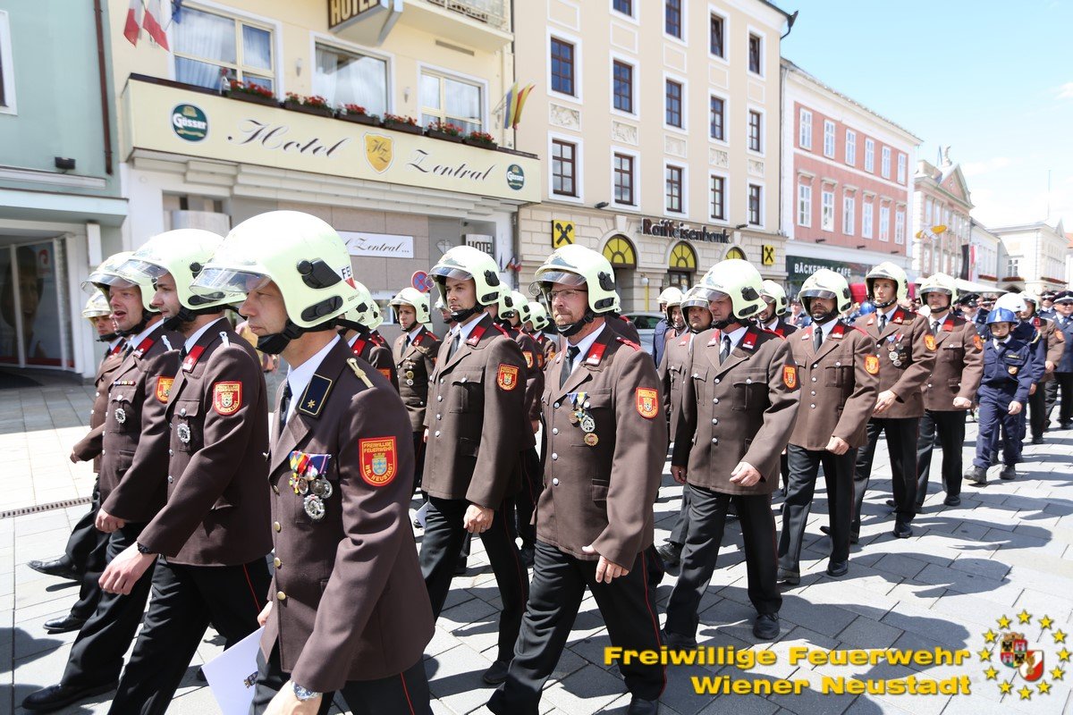 Viele Kameraden wurden geehrt und man ließ es sich nicht nehmen für Verdienste um die Internationale Kooperation auch Gäste aus den Neustädten Europas zu Ehren. Auch aus der Wirtschaft durfte eine hohe Auszeichnung vergeben werden: Dr. Philipp Jaklin von der Firma Jamal wurde die Florianiplakette des NÖ Landesfeuerwehrverbandes Clubobmann und Bürgermeister Klaus Schneeberger überreicht wurde. Dieser wurde ebenfalls geehrt und mit der höchsten Auszeichnung überrascht, die das Feuerwehrwesen einem Zivilisten übergeben kann. Bezirksfeuerwehrkommandant-Stv. und Wr. Neustädter Feuerwehrkommandant Josef Bugnar überreichte Bürgermeister Schneeberger die Florianiplakette des Österreichischen Bundesfeuerwehrverbandes, der Dachorganisation aller Feuerwehren Österreichs.