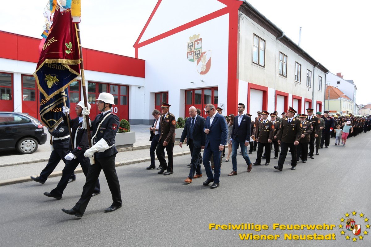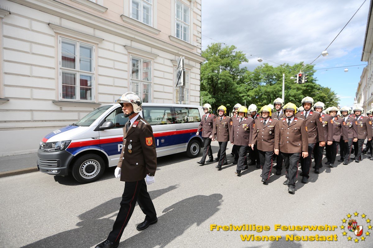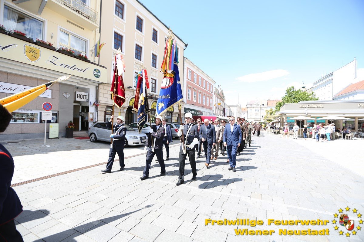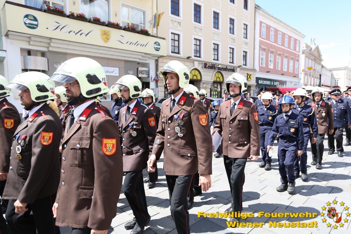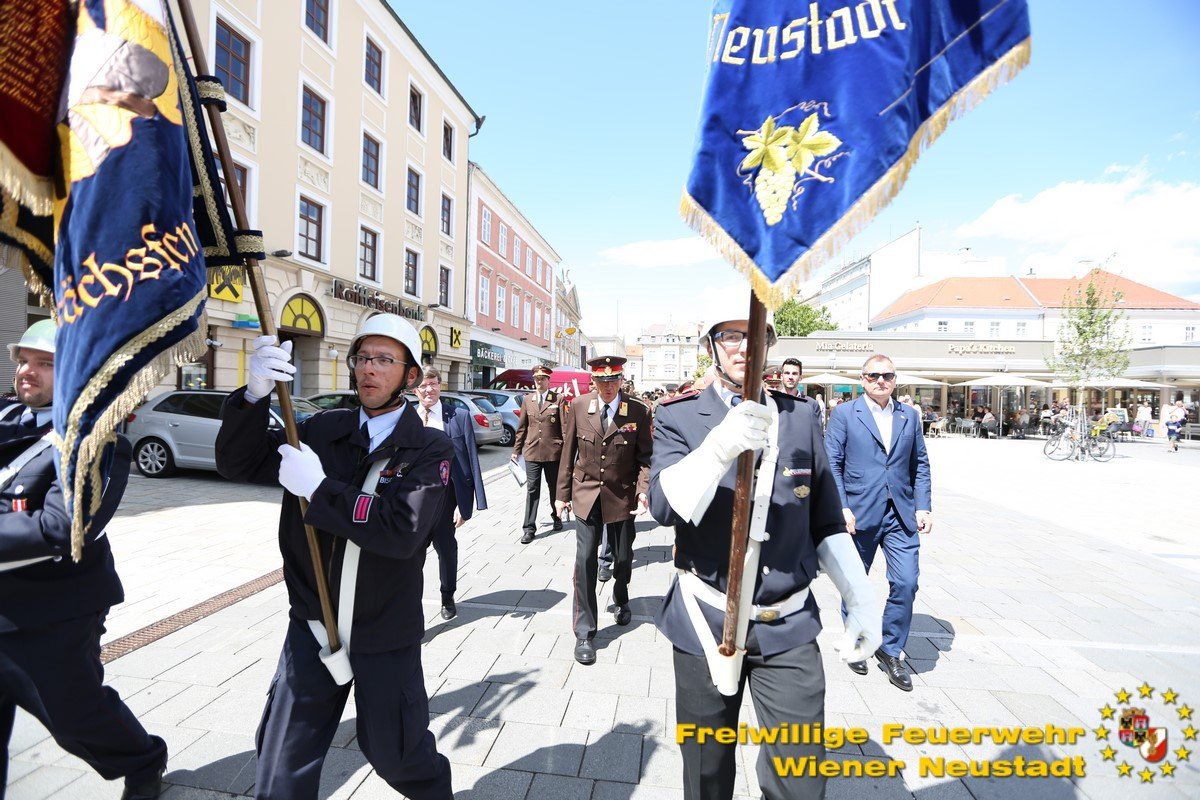Viele Kameraden wurden geehrt und man ließ es sich nicht nehmen für Verdienste um die Internationale Kooperation auch Gäste aus den Neustädten Europas zu Ehren. Auch aus der Wirtschaft durfte eine hohe Auszeichnung vergeben werden: Dr. Philipp Jaklin von der Firma Jamal wurde die Florianiplakette des NÖ Landesfeuerwehrverbandes Clubobmann und Bürgermeister Klaus Schneeberger überreicht wurde. Dieser wurde ebenfalls geehrt und mit der höchsten Auszeichnung überrascht, die das Feuerwehrwesen einem Zivilisten übergeben kann. Bezirksfeuerwehrkommandant-Stv. und Wr. Neustädter Feuerwehrkommandant Josef Bugnar überreichte Bürgermeister Schneeberger die Florianiplakette des Österreichischen Bundesfeuerwehrverbandes, der Dachorganisation aller Feuerwehren Österreichs.