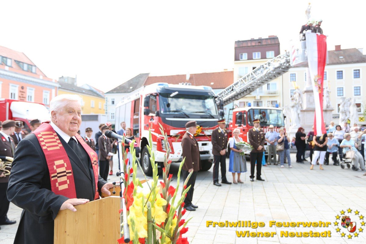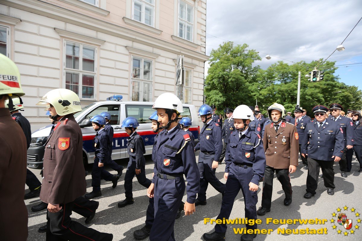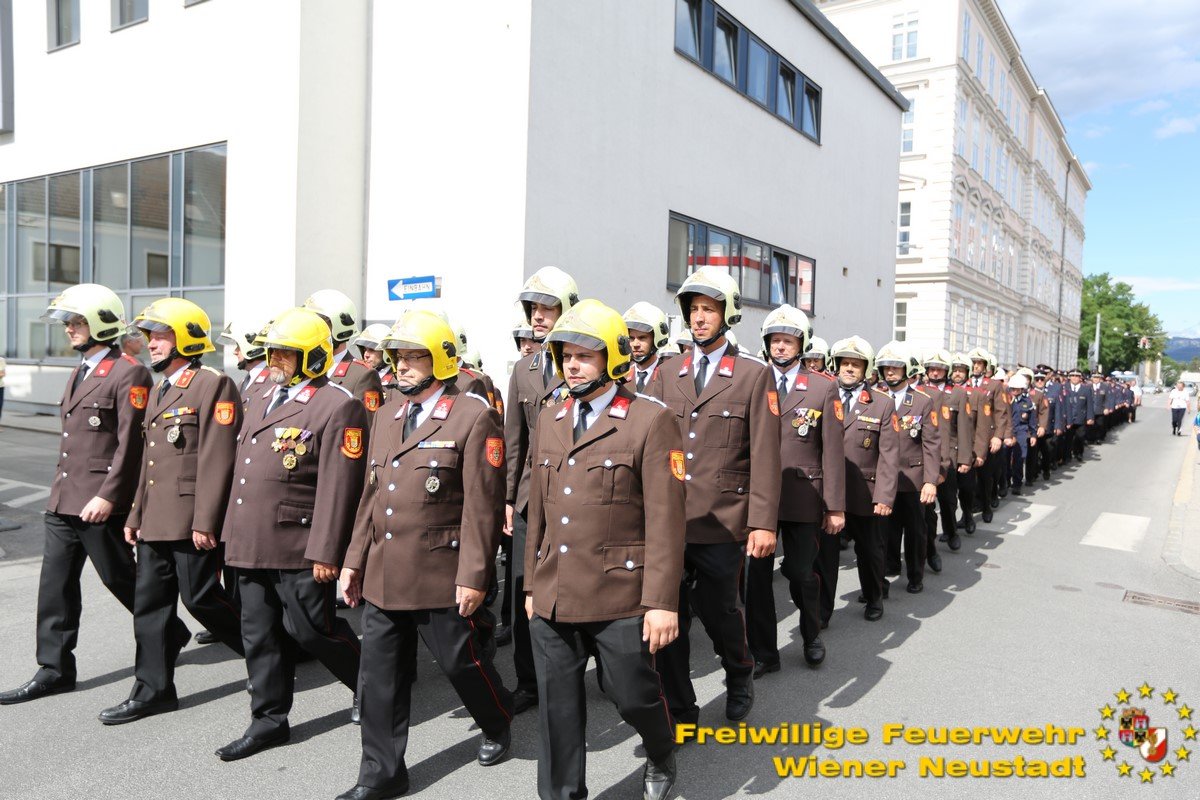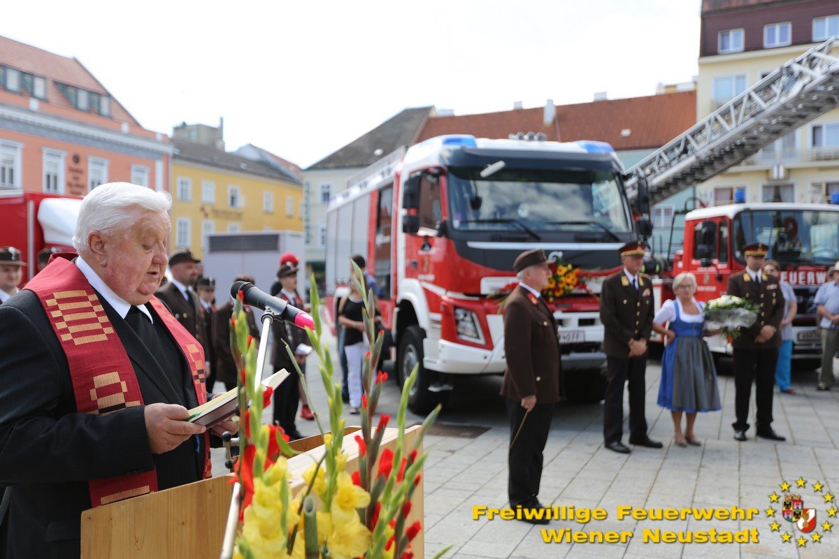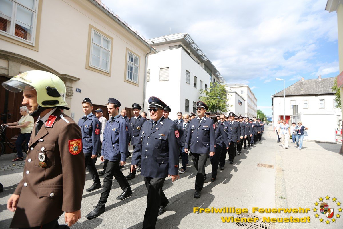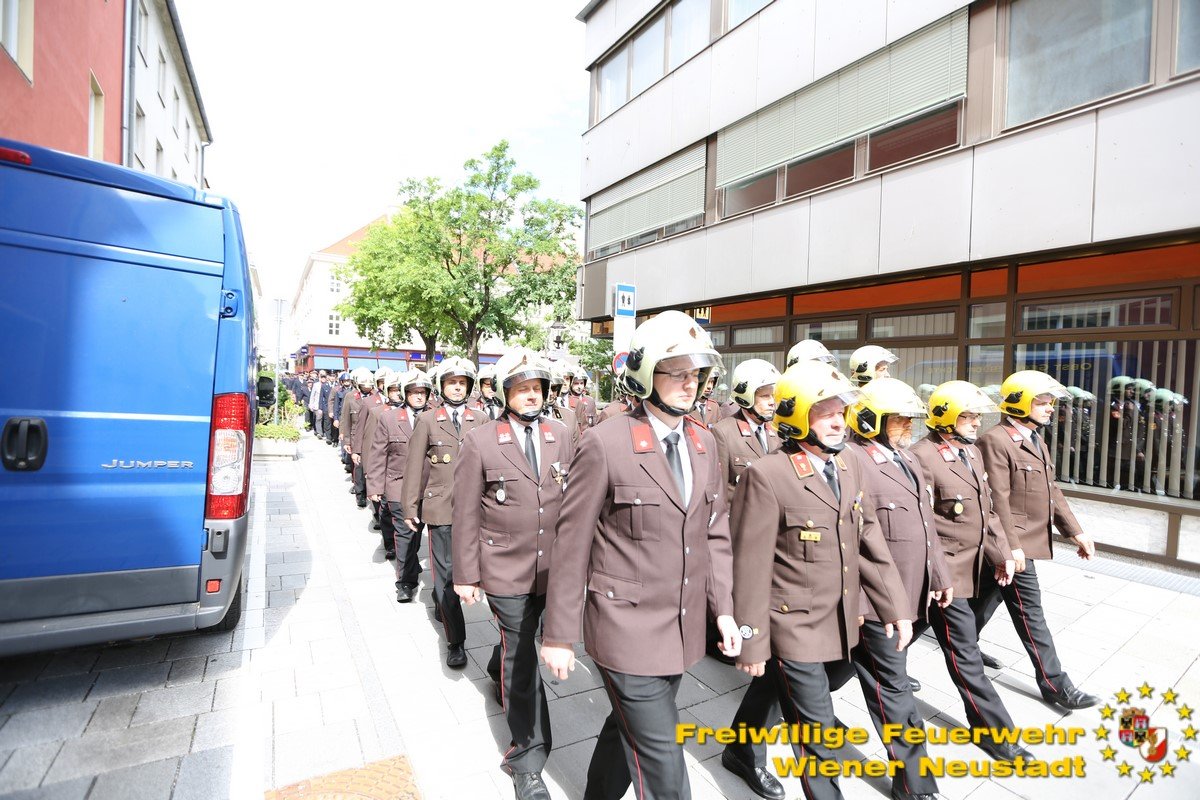 Viele Kameraden wurden geehrt und man ließ es sich nicht nehmen für Verdienste um die Internationale Kooperation auch Gäste aus den Neustädten Europas zu Ehren. Auch aus der Wirtschaft durfte eine hohe Auszeichnung vergeben werden: Dr. Philipp Jaklin von der Firma Jamal wurde die Florianiplakette des NÖ Landesfeuerwehrverbandes Clubobmann und Bürgermeister Klaus Schneeberger überreicht wurde. Dieser wurde ebenfalls geehrt und mit der höchsten Auszeichnung überrascht, die das Feuerwehrwesen einem Zivilisten übergeben kann. Bezirksfeuerwehrkommandant-Stv. und Wr. Neustädter Feuerwehrkommandant Josef Bugnar überreichte Bürgermeister Schneeberger die Florianiplakette des Österreichischen Bundesfeuerwehrverbandes, der Dachorganisation aller Feuerwehren Österreichs.