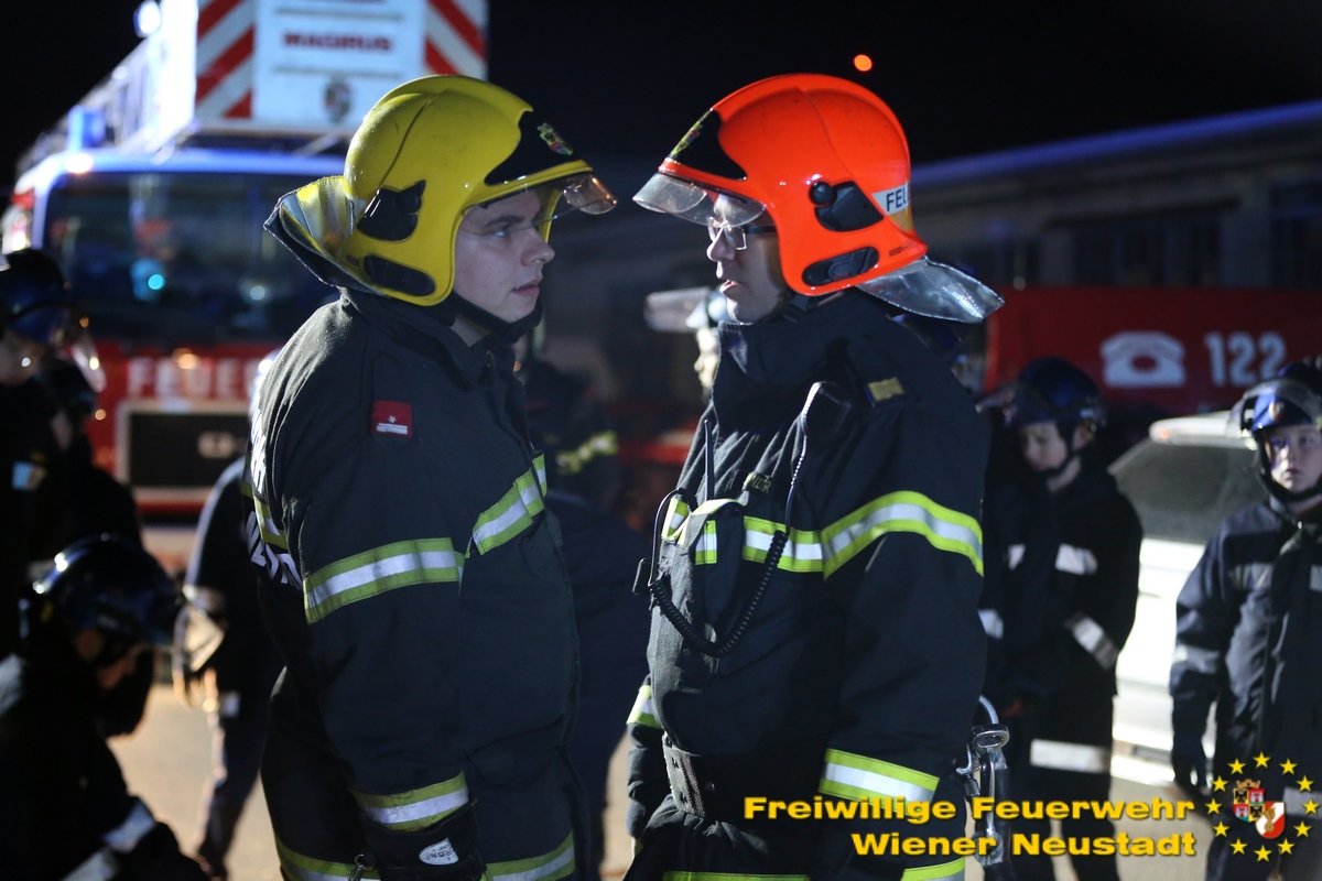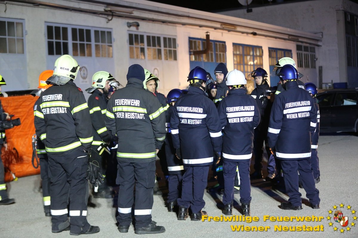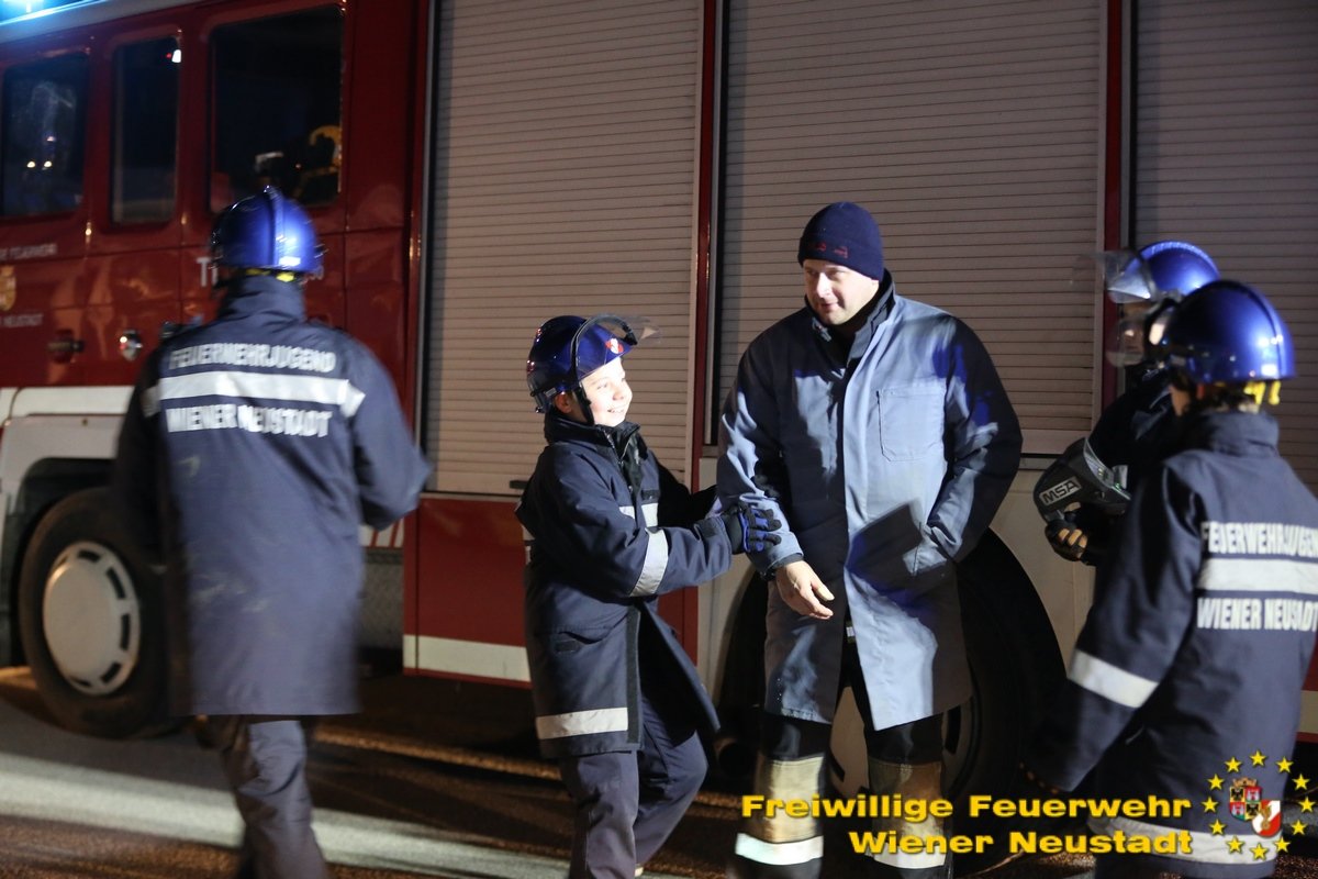Elf aktive Feuerwehrmitglieder der Freiwilligen Feuerwehr Wiener Neustadt nahmen sich am Wochenende die Zeit, um 14 Mitgliedern der Feuerwehrjugend die Feuerwehr so zu zeigen, wie man sie nur als aktives Feuerwehrmitglied sieht. „Es ging uns bei der ‚Langen Nacht der Feuerwehrjugend‘ darum, dass die Burschen erleben wie es ist, wenn man in der Nacht zu einem Einsatz aufgeweckt wird und man aus dem Schlaf gerissen Entscheidungen treffen muss“, erklärt Patrick Milik, Leitender Feuerwehrjugendbetreuer der Freiwilligen Feuerwehr Wiener Neustadt.