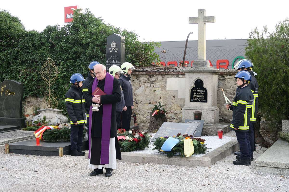 50 Kameraden der Freiwilligen Feuerwehr Wiener Neustadt besuchten wie in jedem Jahr das Ehrengrab der Feuerwehrkameraden Neustadts. In einer andächtigen Rede erklärte Pater Walter Ludwig, welche Bürde der ehrenamtliche Feuerwehrdienst darstellt und wie gefährlich der Einsatz für die Allgemeinheit sein kann. Nicht nur, weil sich heuer der tragische Tod im Einsatz von Thomas Ungersböck zum 20. Mal jährt, auch weil aktuell ein Kamerad aus Südtirol im Rahmen der Unwettereinsätze von einenm Baum tödlich getroffen wurde, erinnert Pater Walter, dass aufrichtiger Mut zum Feuerwehrdienst gehört.