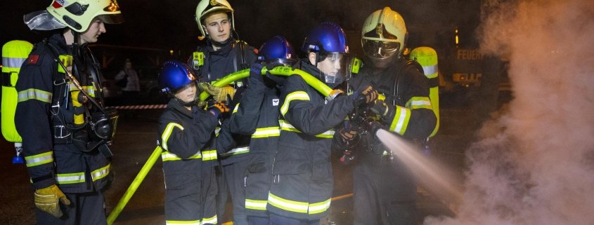 Die Feuerwehr Wiener Neustadt konnte dabei nicht nur spektakulär zeigen, was passiert wenn man Wasser in brennendes Fett schüttet, sondern nutzte die Gelegenheit gleich, um auch der Feuerwehrjugend eine Schulung in Sachen physikalischer Grundlagen und Brandbekämpfung zukommen zu lassen.