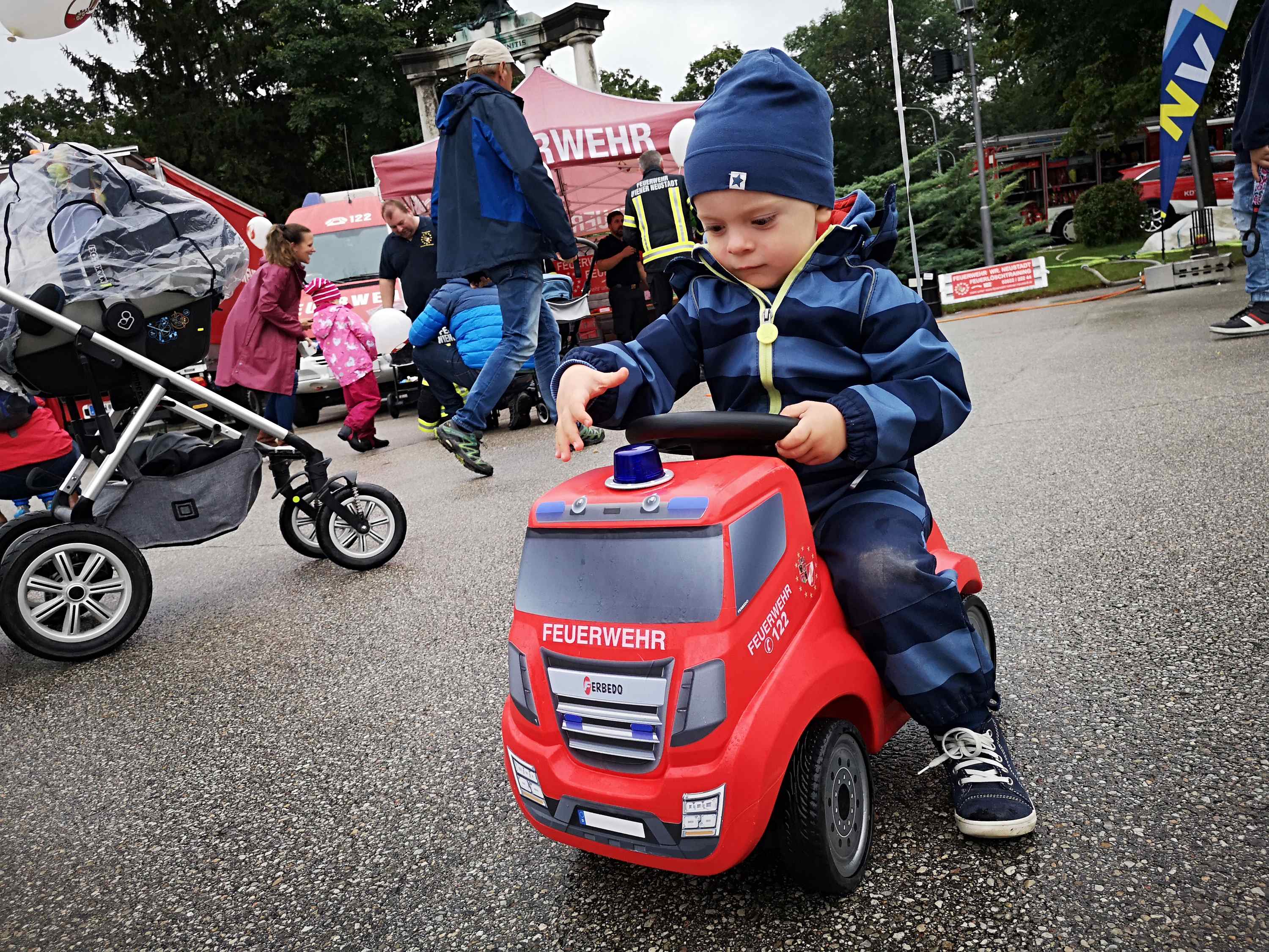 Am Stand der Freiwilligen Feuerwehr Wiener Neustadt konnten Kinder Feuerwehrluftballone mitnehmen, es gab Helme und Plüschtiere zu kaufen und natürlich durften die Kleinsten mit unseren KKTF (dem Kleinkindertransportfahrzeug) eine Runde drehen.
