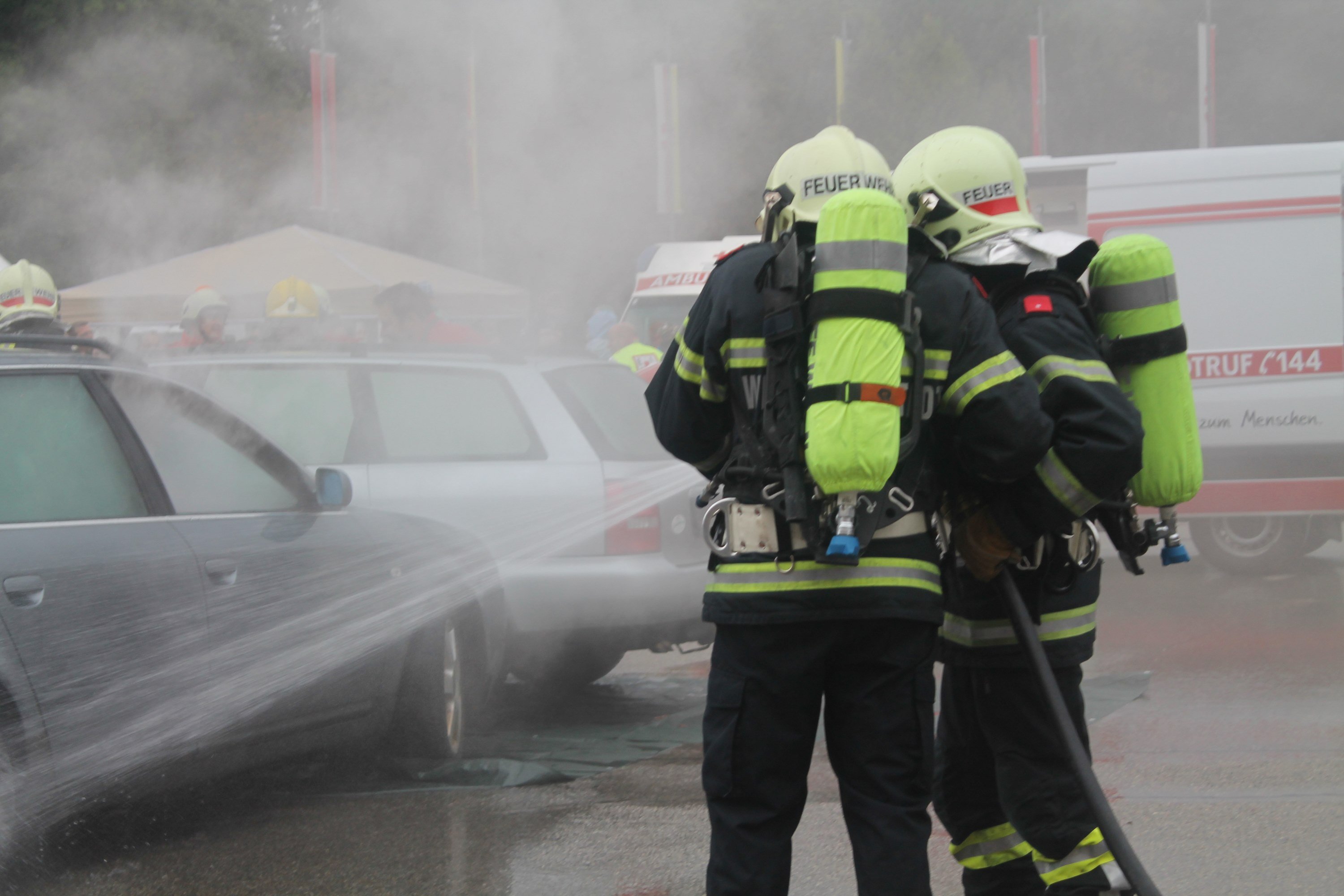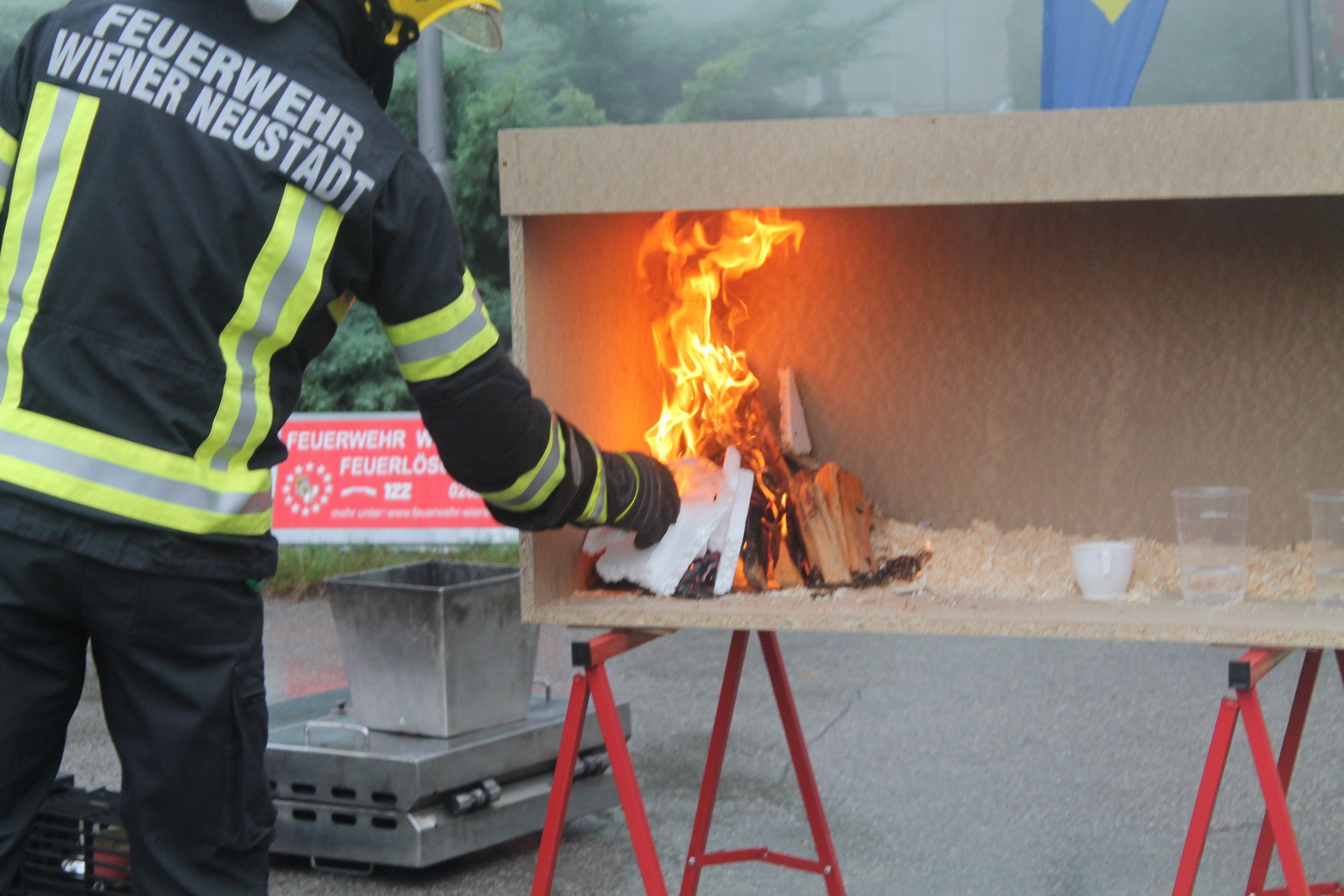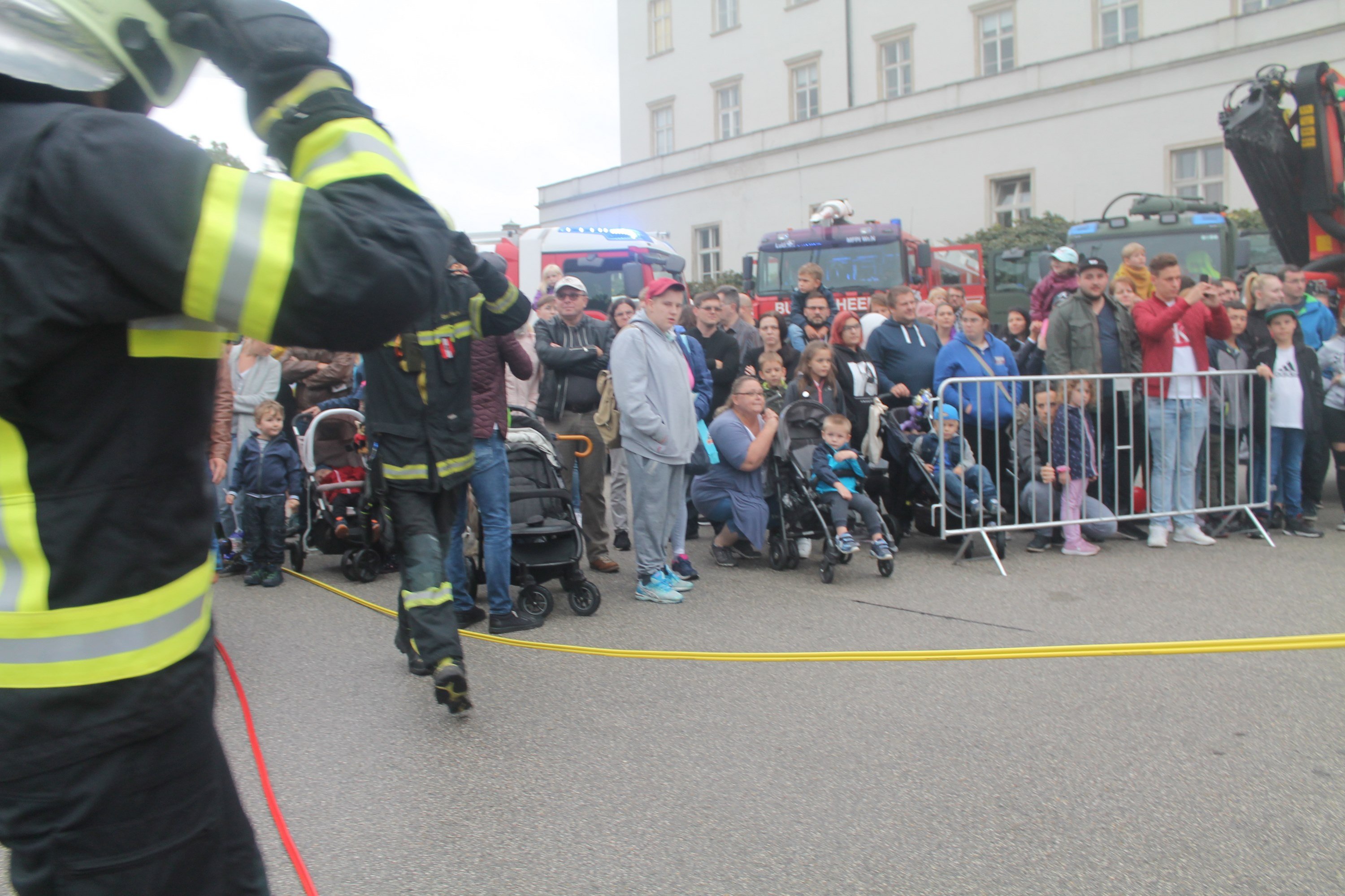 Mit 38 Mann und 18 Fahrzeugen konnte die Freiwillige Feuerwehr Wiener Neustadt das volle Spektrum der Aufgaben präsentieren. Bei zwei Übungen konnte in Zusammenarbeit mit dem Roten Kreuz den Besucherinnen und Besuchern hautnah die professionelle Arbeitsweise präsentiert werden. In gewohnter Doppelconference präsentierten Wolfgang Ledwinka vom Roten Kreuz und Richard Berger von der FF Wr. Neustadt die jeweiligen Aufgaben, die Arbeitsweise, die jeweilige Organisation sowie jene Dinge, welche man sonst nicht so einfach über die beiden ehrenamtlichen Einsatzorganisationen erfährt.