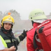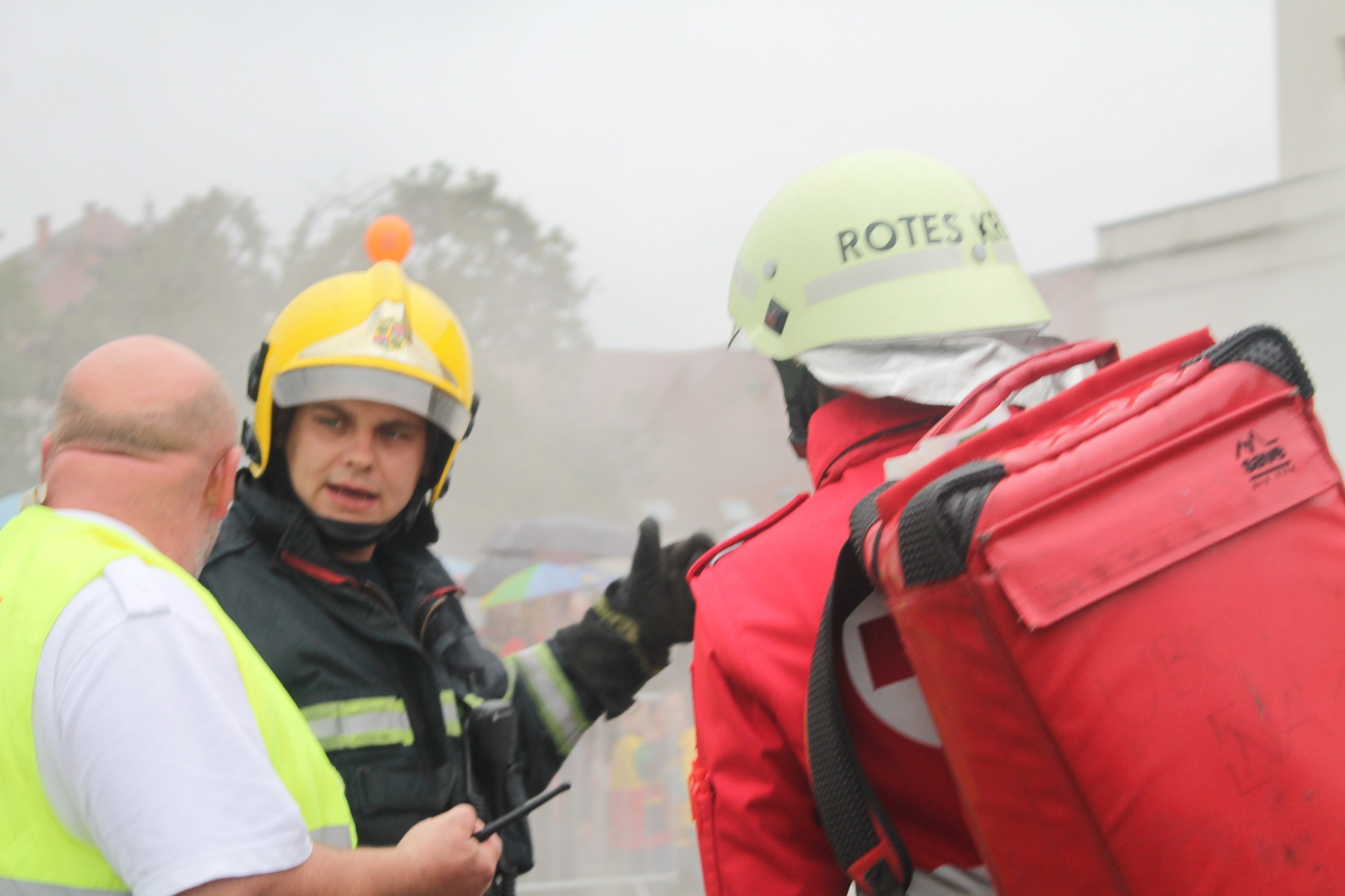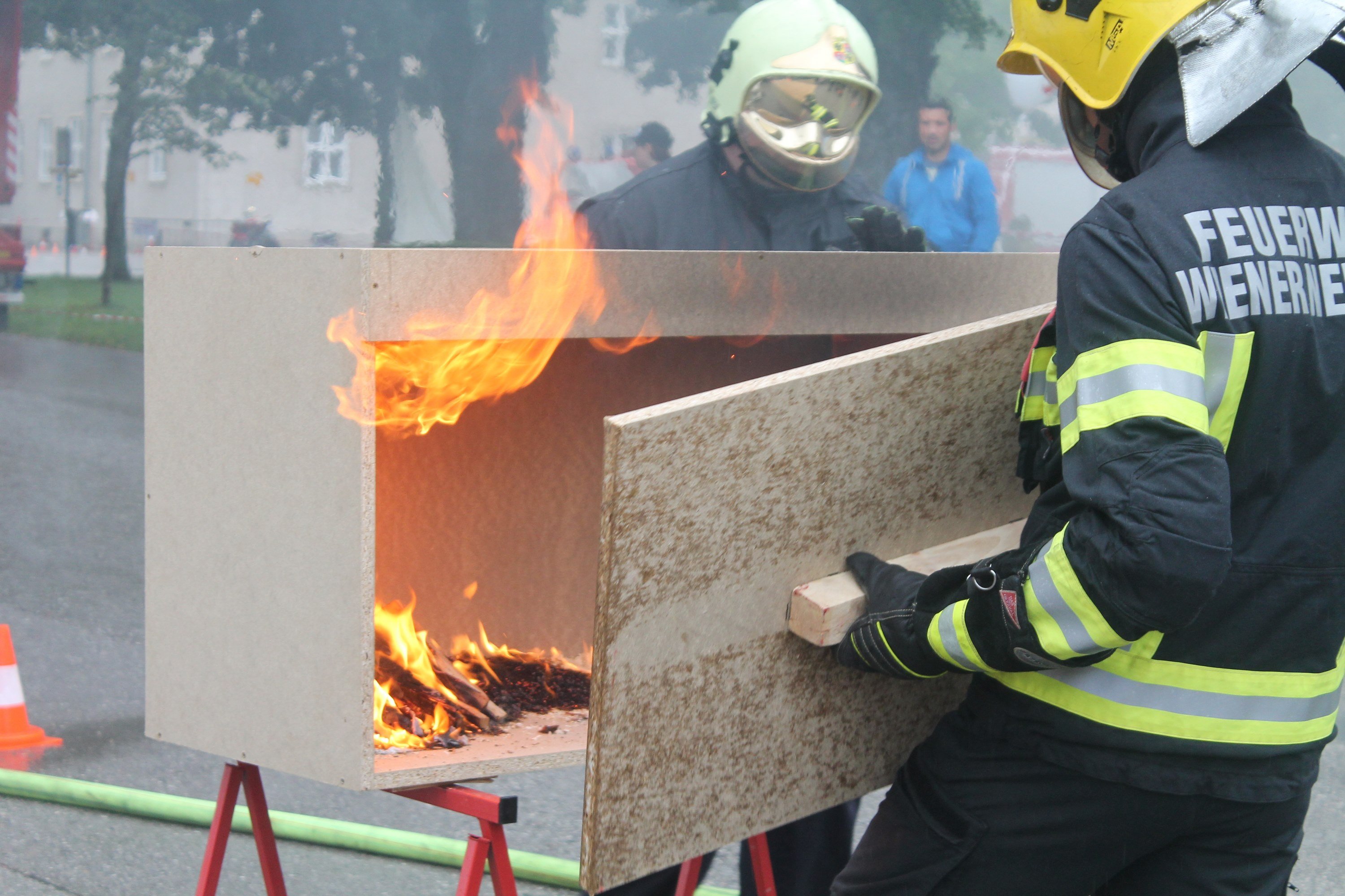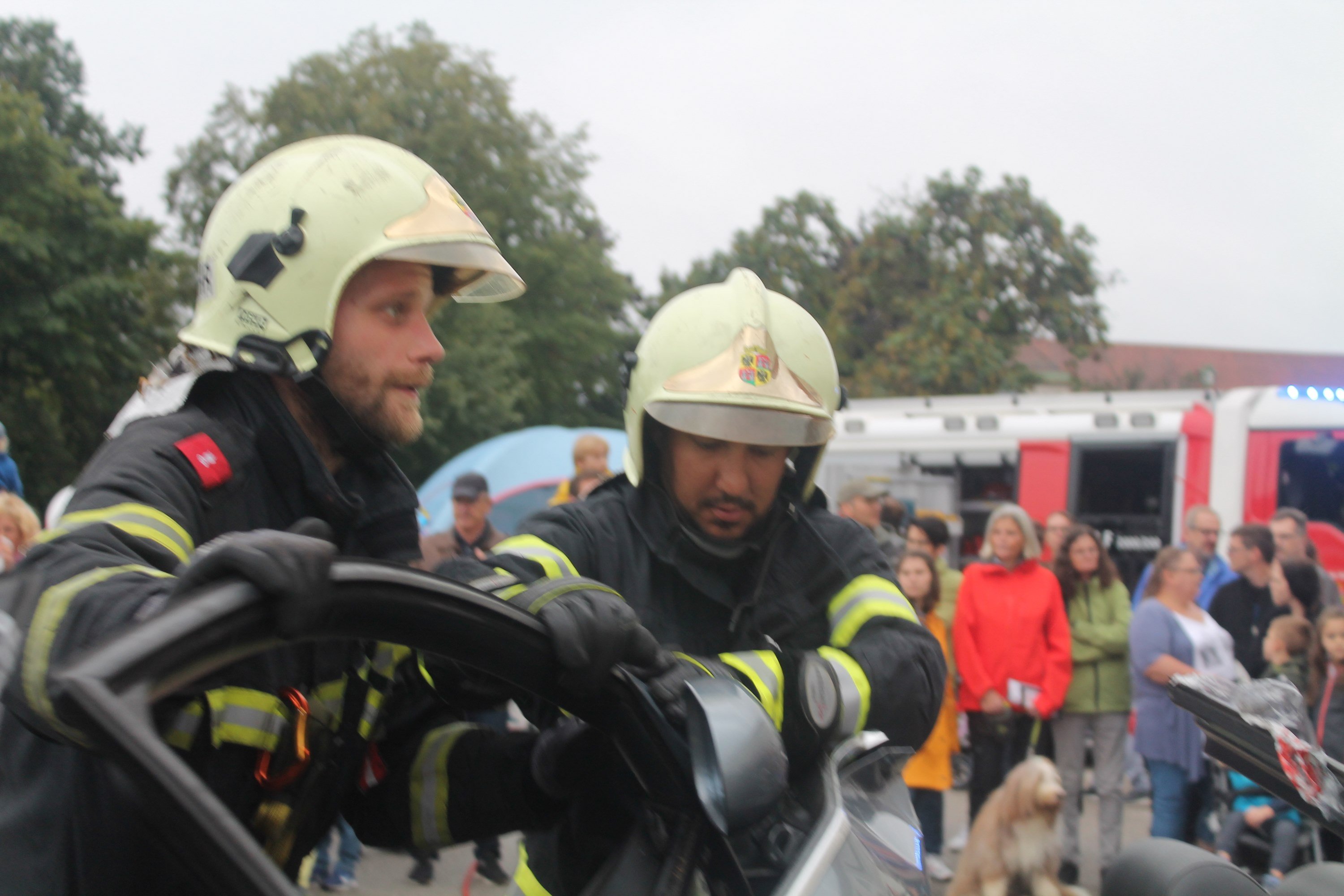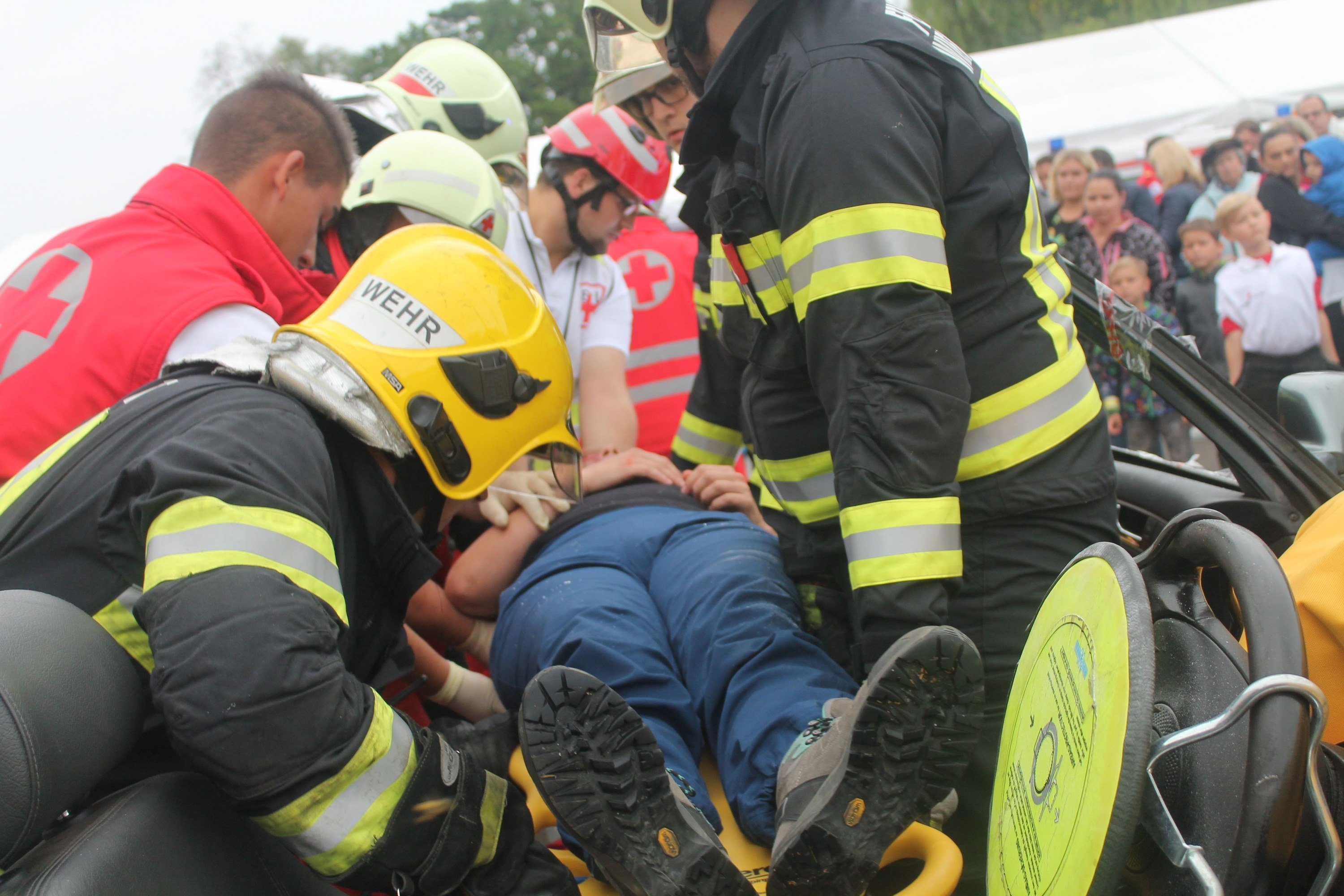 Mit 38 Mann und 18 Fahrzeugen konnte die Freiwillige Feuerwehr Wiener Neustadt das volle Spektrum der Aufgaben präsentieren. Bei zwei Übungen konnte in Zusammenarbeit mit dem Roten Kreuz den Besucherinnen und Besuchern hautnah die professionelle Arbeitsweise präsentiert werden. In gewohnter Doppelconference präsentierten Wolfgang Ledwinka vom Roten Kreuz und Richard Berger von der FF Wr. Neustadt die jeweiligen Aufgaben, die Arbeitsweise, die jeweilige Organisation sowie jene Dinge, welche man sonst nicht so einfach über die beiden ehrenamtlichen Einsatzorganisationen erfährt.