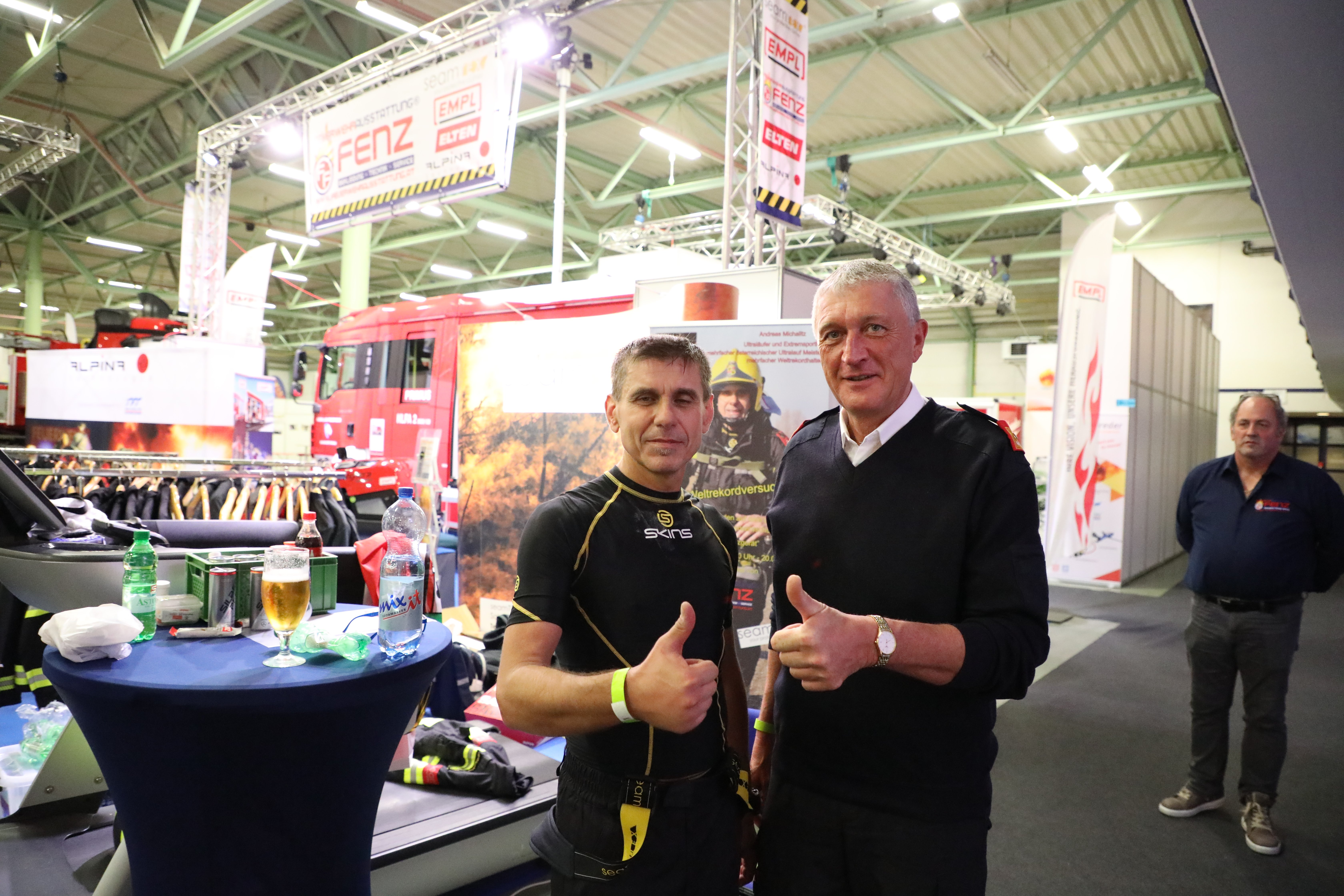 Im Rahmen der Feuerwehrmesse Burgenland in Oberwart besuchte auch Feuerwehrpräsident Albert Kern vom Österreichischen Bundesfeuerwehrverband den Extremsportler, der immer wieder im Einsatzdienst steht. Das Team von FEUERWEHR.AT hat den Beginn, die Erreichung der 50 Kilometer und das Ende des Laufs live via facebook.com/feuerwehr übertragen. Auch ist Feuerwehrkommandant Josef Bugnar gehörte zu den Gratulanten: „Wir sind sehr stolz auf unseren Andi! Nicht nur, dass er so großartige Leistungen im sportlichen Bereich abliefert: Er ist auch im Einsatzdienst eine Stütze und trägt als Zugskommandant bei den vielen Einsätzen einen erheblichen Beitag zum Einsatzerfolg bei.“