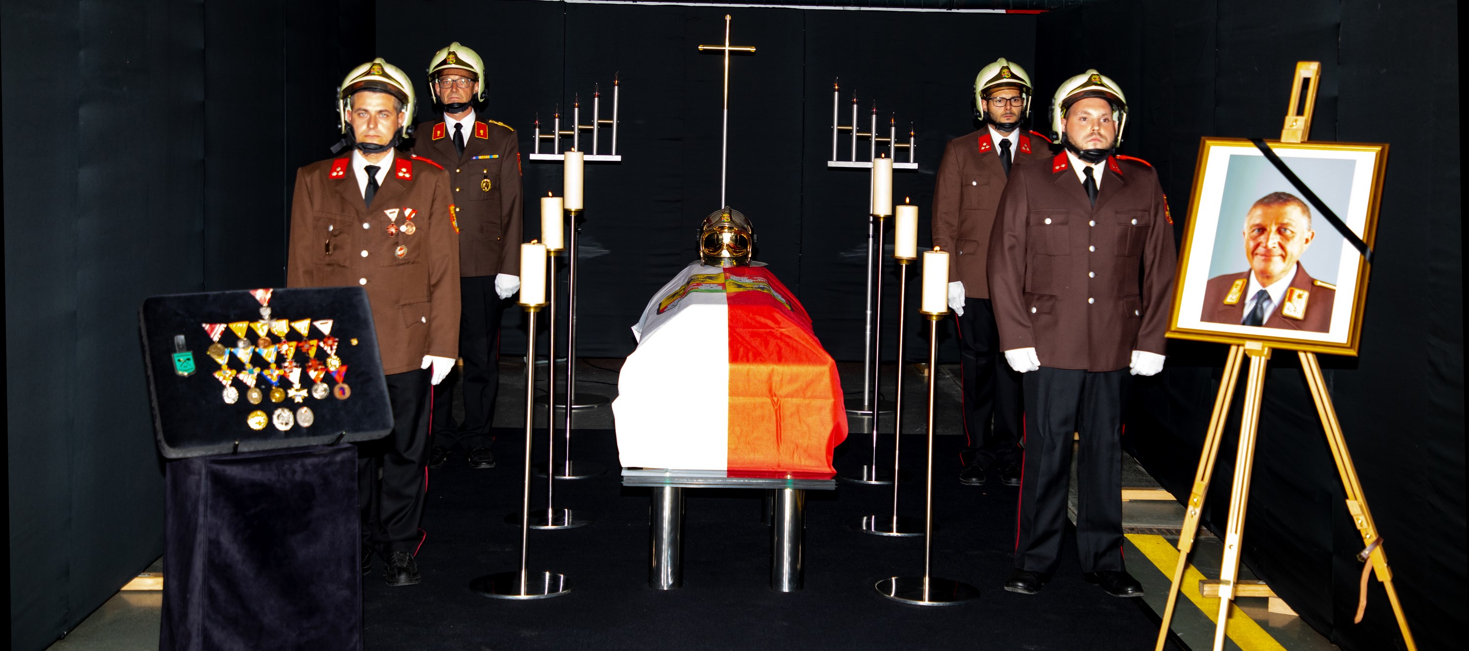 Seit 11 Uhr ist unser verstorbener Kommandant, Kamerad und Freund Branddirektor Josef Bugnar in der Fahrzeughalle der Freiwilligen Feuerwehr Wiener Neustadt aufgebahrt. Befreundete Organisationen, Kameradinnen und Kameraden der umliegenden Feuerwehren und natürlich Mitglieder der FF Wr. Neustadt stehen ihm bis morgen, 11 Uhr als Ehrenwache zur Seite. Die Bevölkerung ist herzlich eingeladen, sich still von Pepi Bugnar in der Feuerwehrzentrale zu verabschieden. Es ist eine Box für schriftliche Beileidsbekundungen aufgestellt. Grablichter und Blumen können vor dem 24 Stunden geöffneten Tor abgelegt werden.