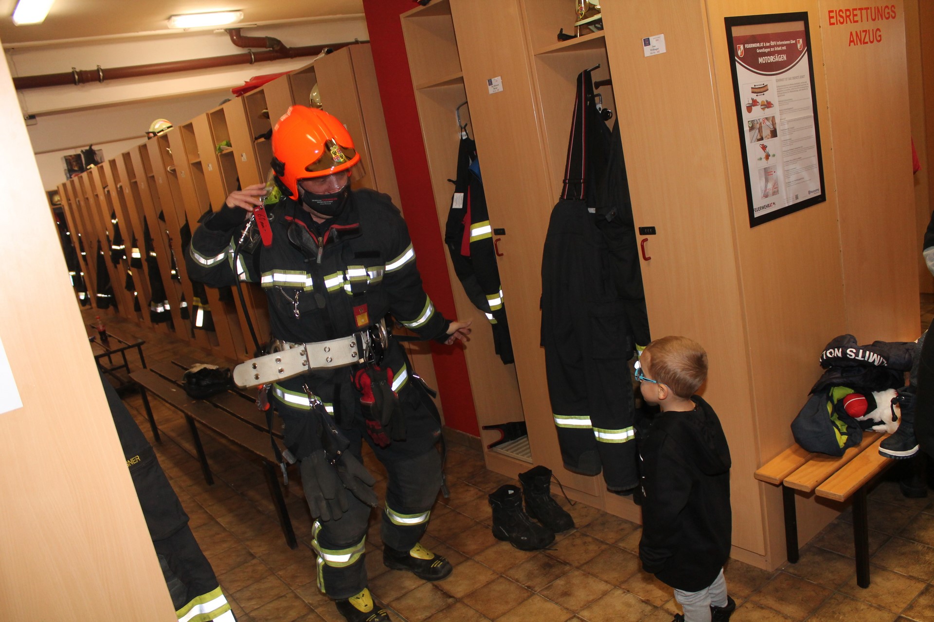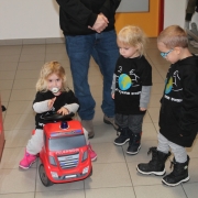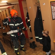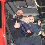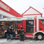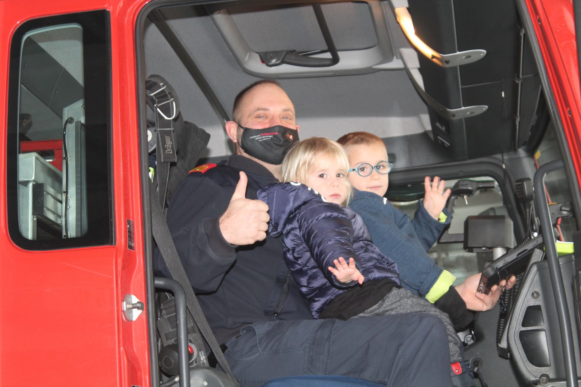 Nach einer Pause im Raum der Feuerwehrjugend, wo selbstverständlich auch die (fast) passende Jacke anprobiert wurde, fand die Führung im Neubau sein Ende. Müde, aber begeistert von den zahlreichen Eindrücken, kam der Abschluss schließlich mit einer ganz besonderen Heimfahrt. Die Familie wurde in einem Tanklöschfahrzeug nach Hause gebracht. Mit dem Ehrengast Adam als neuen Fahrzeugkommandant, natürlich im Kindersitz. Als Erinnerung an seine heutigen Erlebnisse erhielt Adam noch einen Feuerwehr-Felix sowie ein Uniformshirt der Feuerwehrjugend Wiener Neustadt. Begeistert von der Feuerwehr Wiener Neustadt und inspiriert von einigen Kinderzeichnungen in der Feuerwehrzentrale versprachen die Kinder als Dankeschön ein selbstgemaltes Bild, welches natürlich in Ehre gehalten wird.